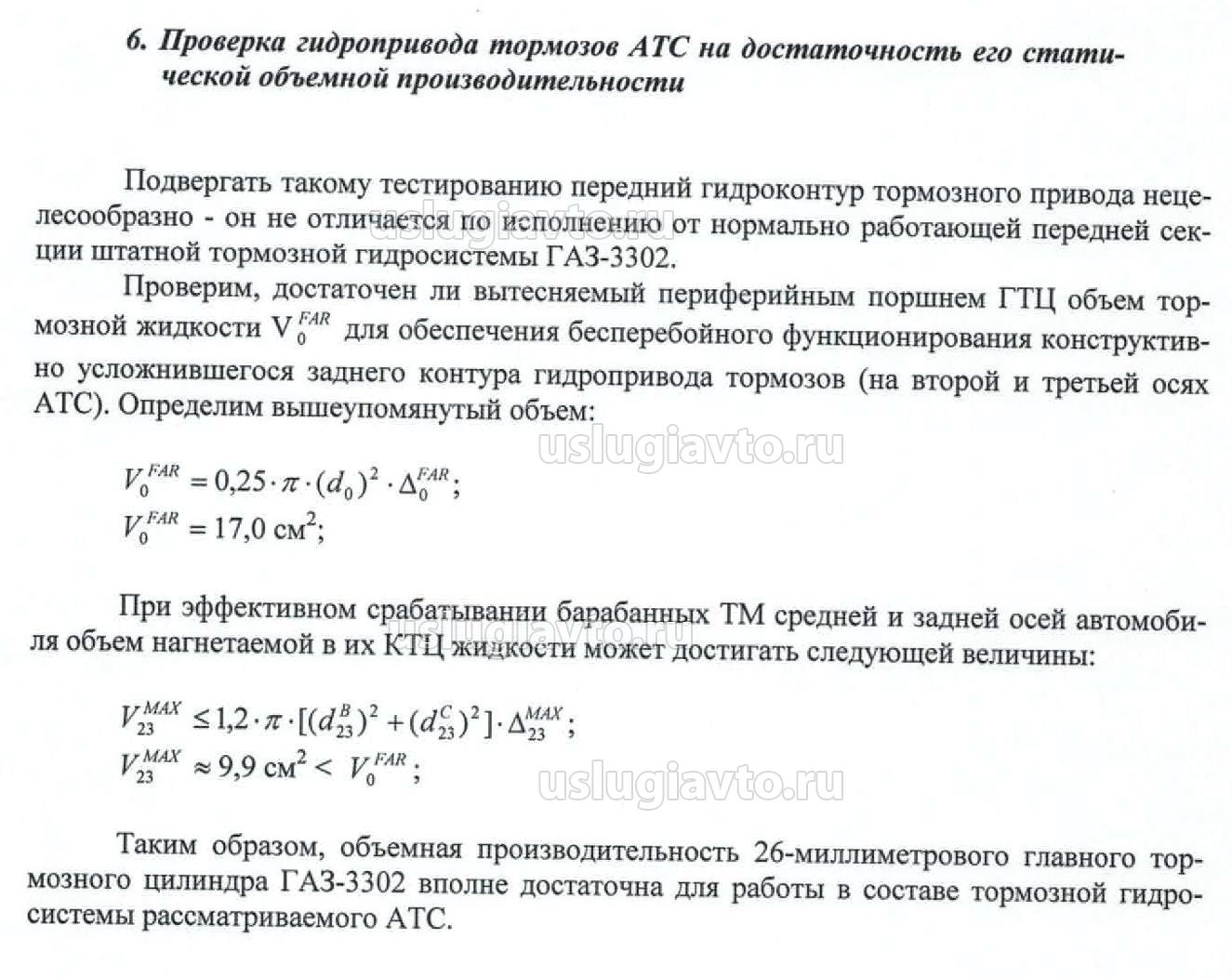 Проверка гидропривода тормозов АТС на достаточность его статической объемной производительности: