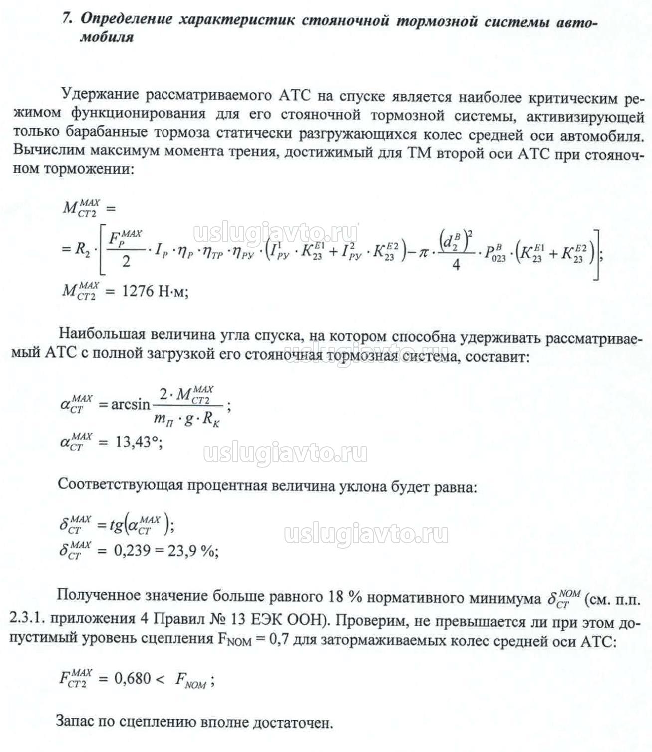 Определение характеристик стояночной тормозной системы автомобиля: