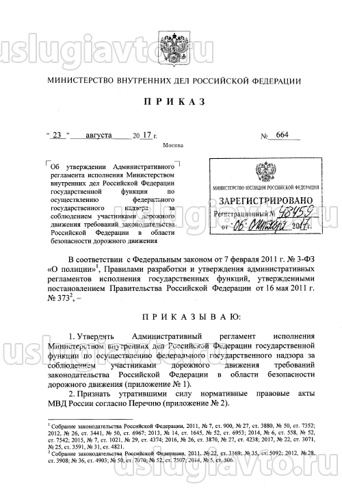 Приказ МВД РФ № 664 от 23.08.2017