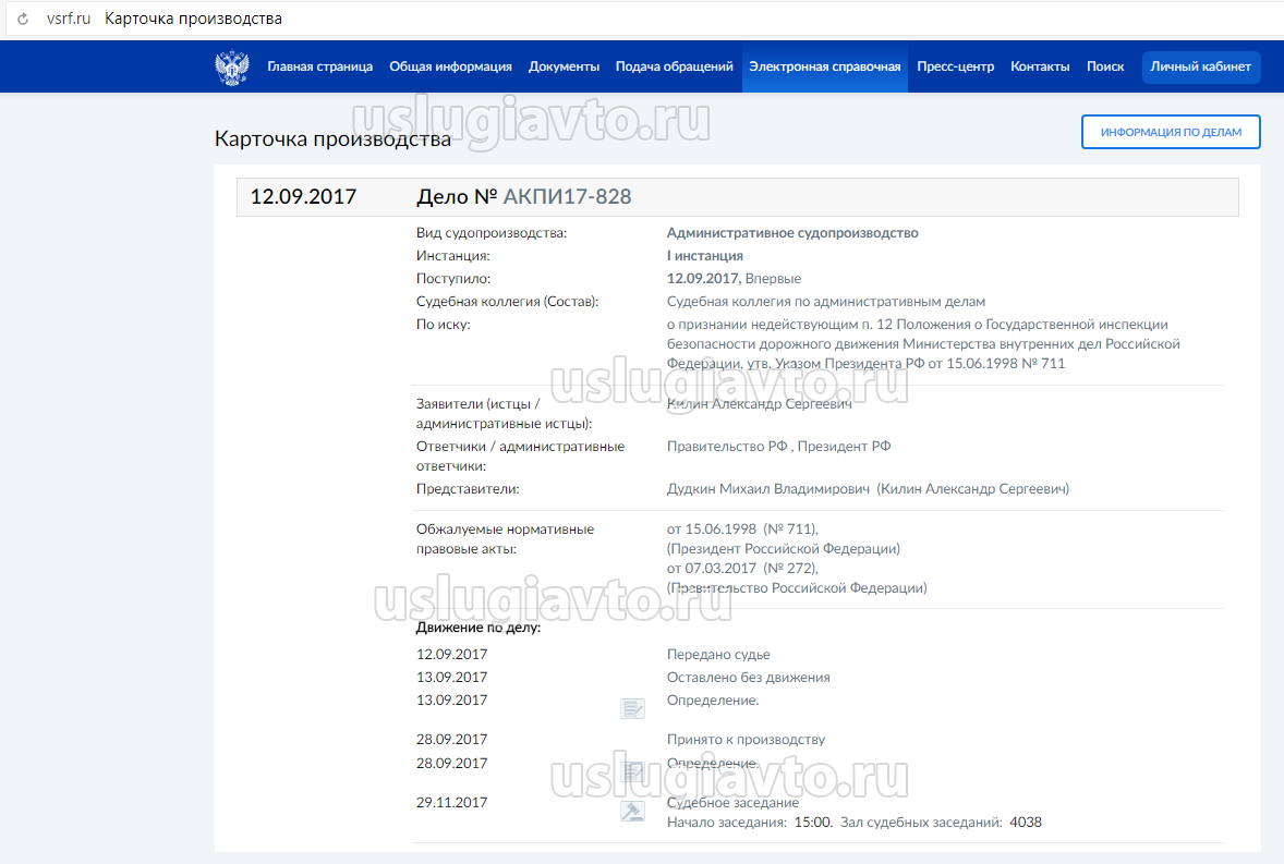 Верховный суд рассмотрит административный иск о признании недействующим п. 12 Положения о Государственной инспекции безопасности дорожного движения Министерства внутренних дел Российской Федерации, утв. Указом Президента РФ от 15.06.1998 № 711