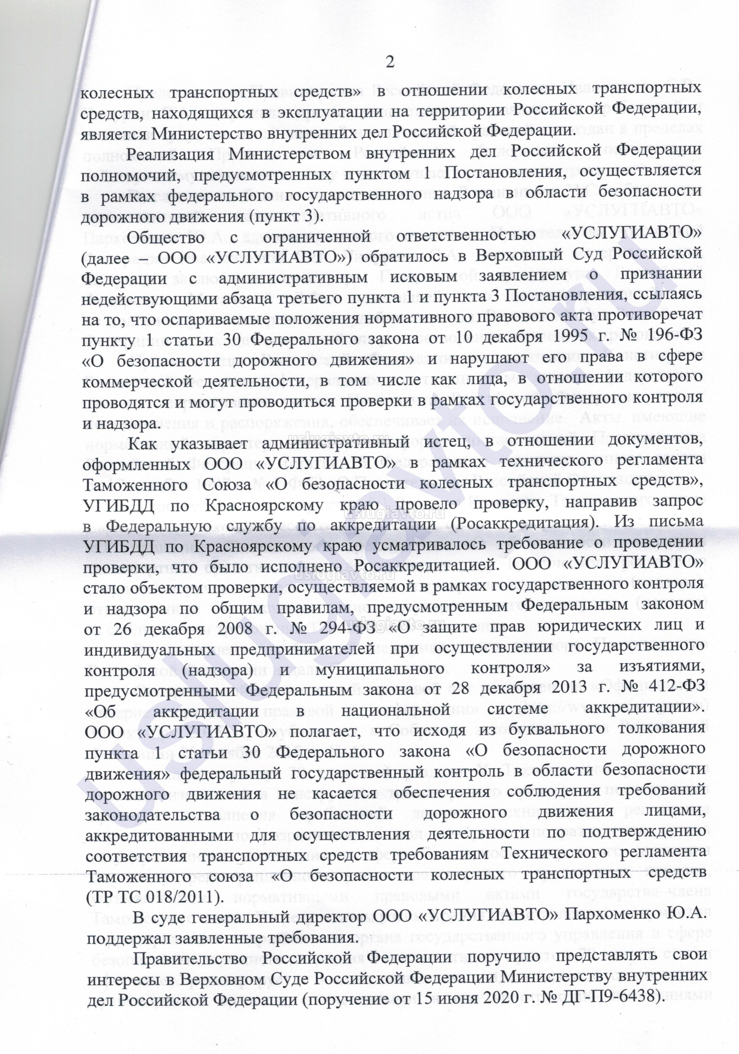В судебном решении суд указал, что органы (Росстандарт и МВД), указанные в оспариваемом постановлении правительства № 1108, обладают исключительной компетенцией по надзору и контролю за соблюдением требований технического регламента «О безопасности колесных транспортных средств» (ТР ТС 018/2011).