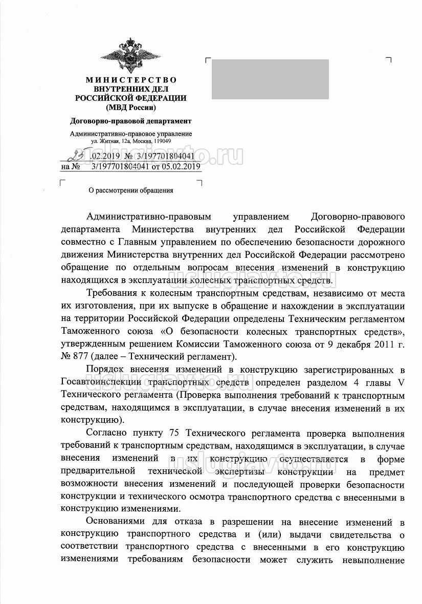 Все, что на двух последних страницах спрашивают люди,- можно самим найти в сети и здесь на форуме . Но для ОТН, скорее всего только в суде можно доказать,что "колеса большого диаметра" РАЗРЕШЕНЫ в случае ВНЕСЕНИЯ изменений в конструкцию ТС" ,как и оспорить отзывы "фирмы" г.Васильева на запросы ГИБДД !