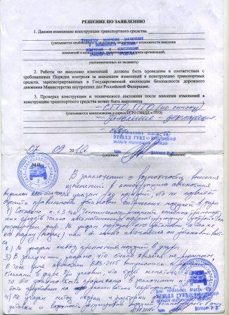 Всем Добрый день! Сегодня всё таки забрал заявление с рецензией на установку биксеноновых модулей, вот полюбуйтесь...............А так говорили, что будет отказ................