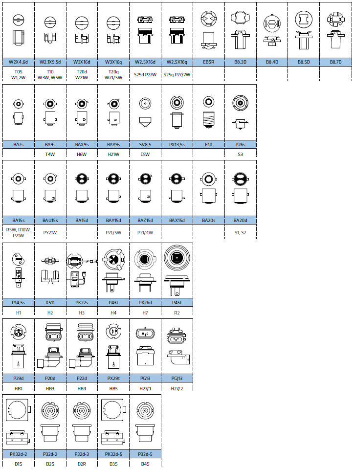 Соответственно, патрон в световом модуле фары используется тот, который совместим с одним стандартным типом лампы.