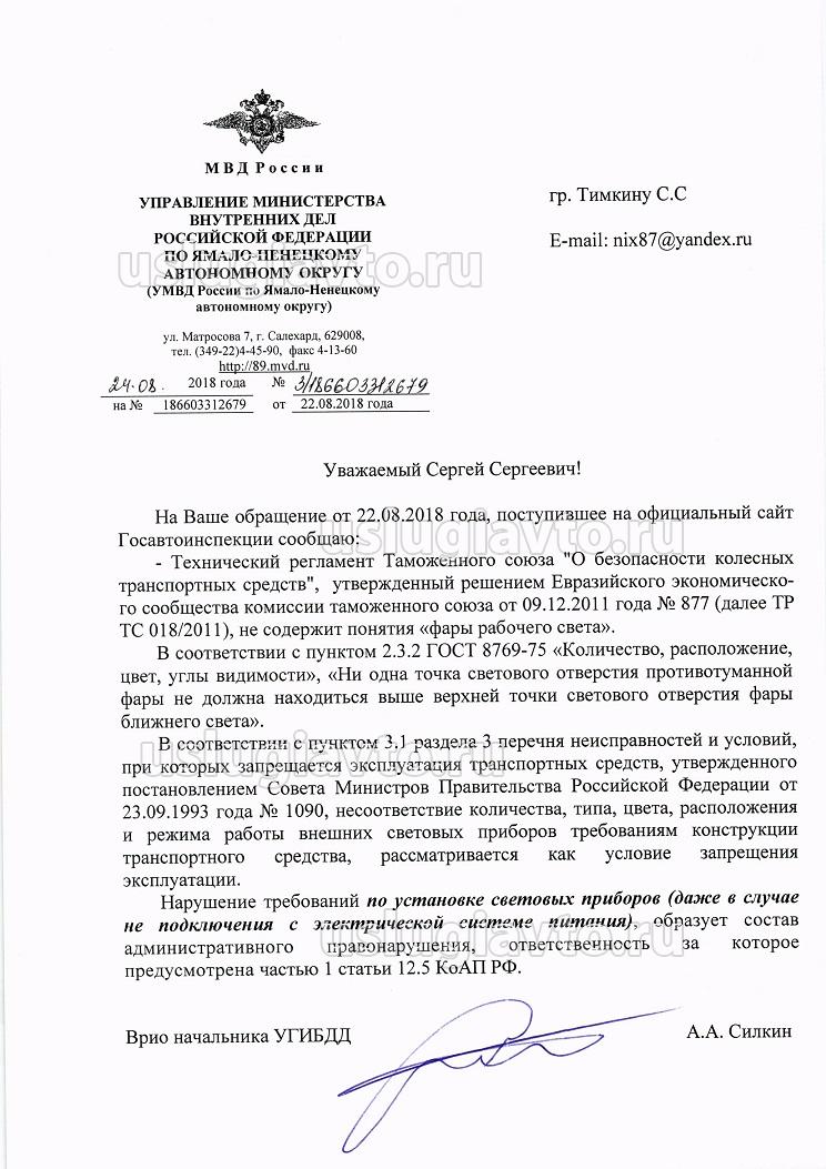 Добрый день, установил на экспедиционный багажник люстру, подключил люстру через влагозащищенный разъем типа такого https://centrumelektroniki.pl/img/p/387 ... ge_default при постоянной эксплуатации люстра отключены и разъем не соединен т.е. люстра не подключена к акб и бортовой сети. Недавно меня остановил сотрудник ГИБДД и сказал чтоб я снимал их, в итоге чтоб уточнить действительно ли это нарушение я написал запрос в гибдд, в итоге мне там ответили подключена ли люстра или нет но это является нарушением закона как выразились "Нарушение по установке световых приборов (даже в случае не подключения с электрической системой питания), образует состав административного правонарушения, ответственность за которое предусмотрено часть. 1 статьи 12.5 КоАП РФ".