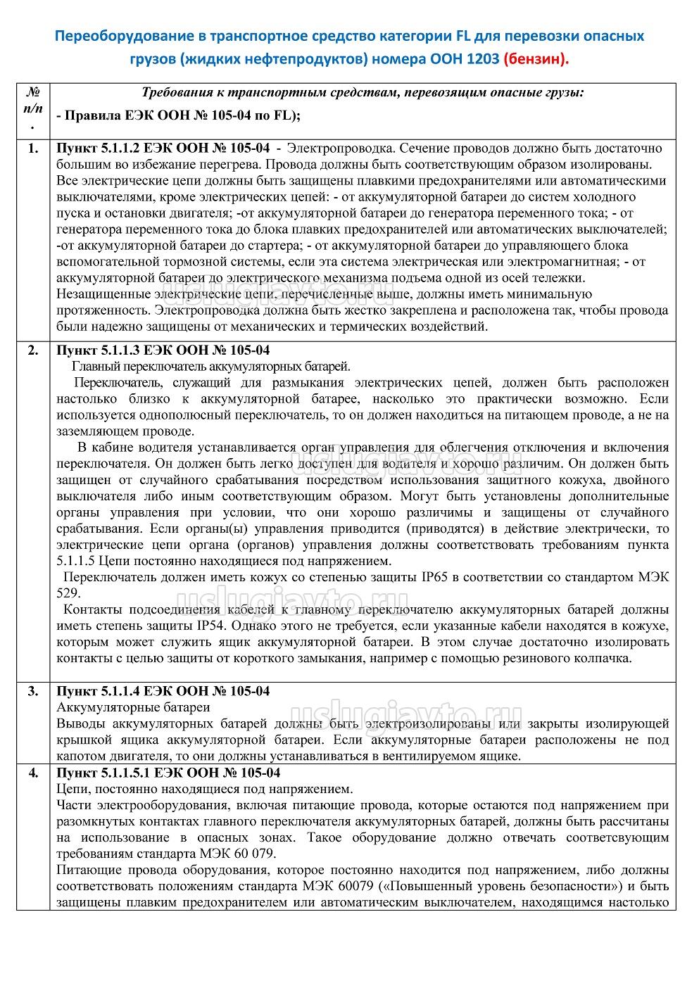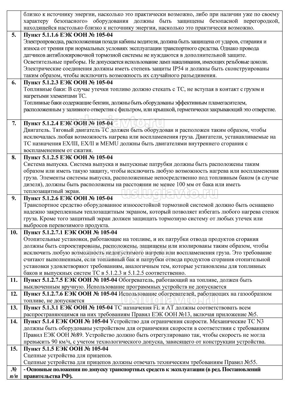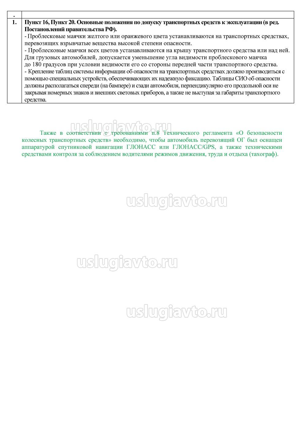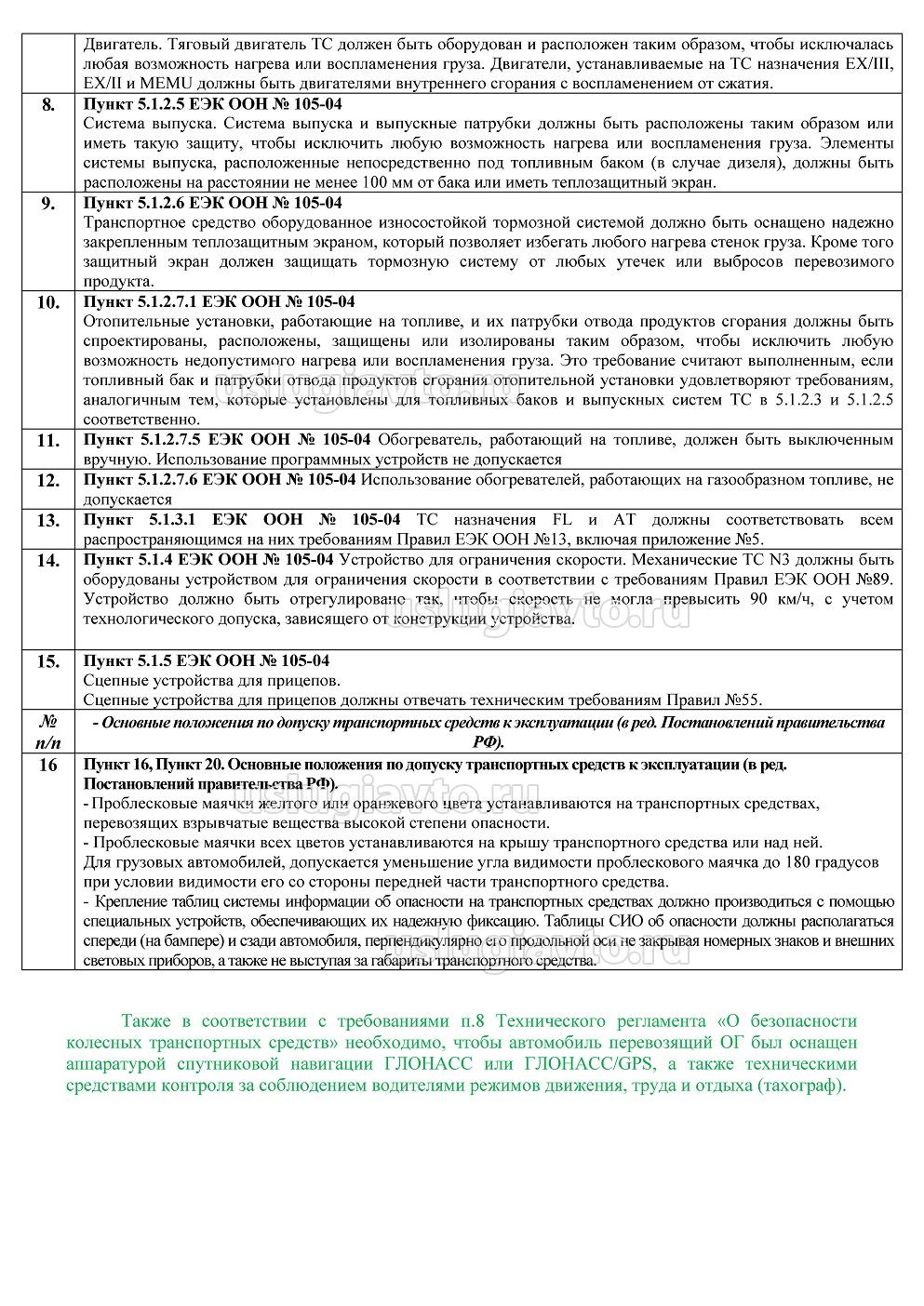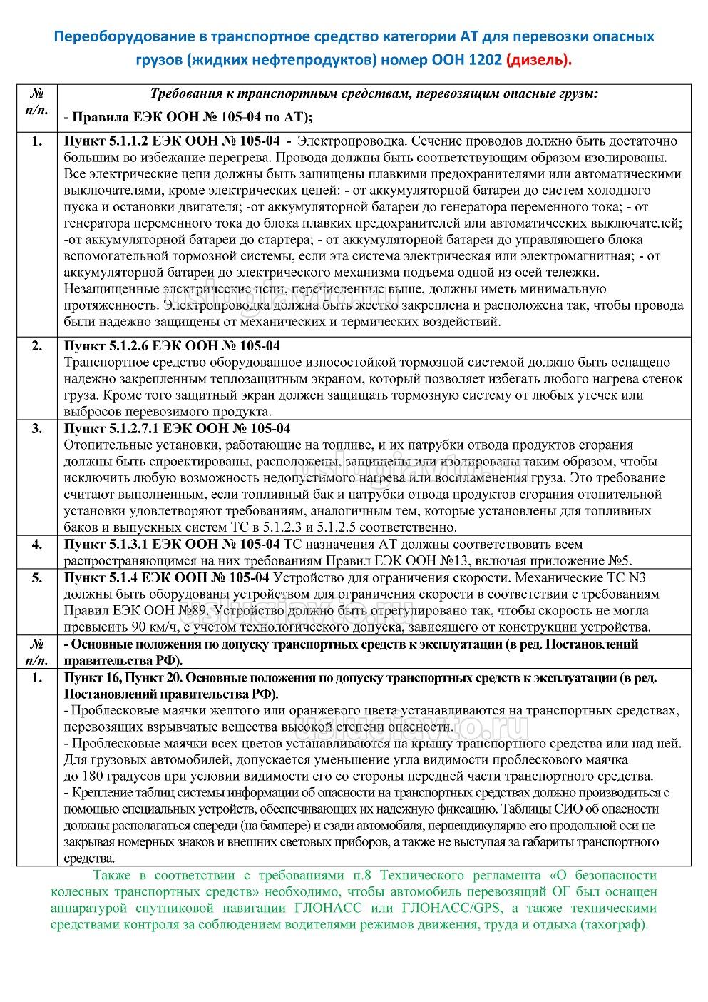 - оборудование ТС для перевозки опасных грузов автомобильным транспортом