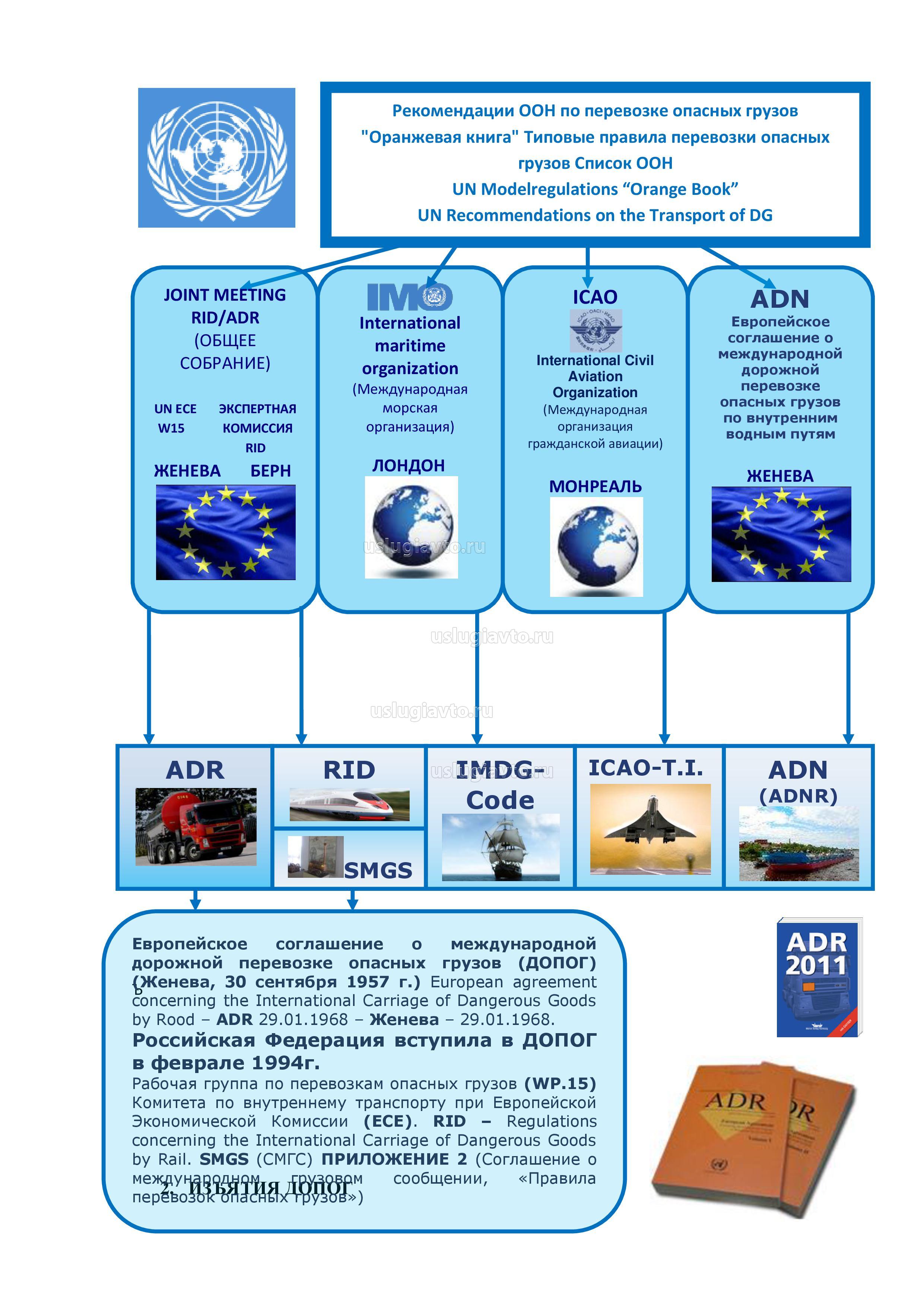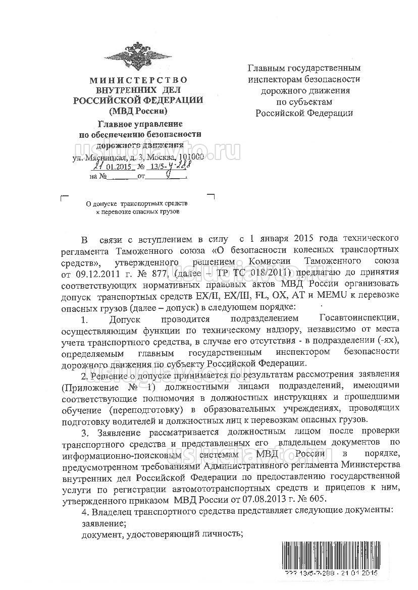 При переходе с требований правил перевозки опасных грузов автомобильным транспортом (ППОГАТ) на ДОПОГ кардинально меняются требования к конструкции и дополнительному оборудованию транспортных средств. Из конструкции транспортных средств исчезает защита бензобака, исчезают требования в отношении выхлопной трубы и наличия заземляющей цепочки. Следует помнить, что допущение к перевозке транспортного средства требуется только в случаях перевозки упакованных опасных грузов 1 класса, перевозок в смесительно-зарядных машинах (MEMU)и перевозок опасных грузов в цистернах емкостью более 3 Следует помнить, что большинство номеров ООН может перевозиться на обыкновенных грузовых ТС. Тем не менее, требование в отношении стационарного проблескового маячка остается, поскольку оно прописано в Правилах дорожного движения.