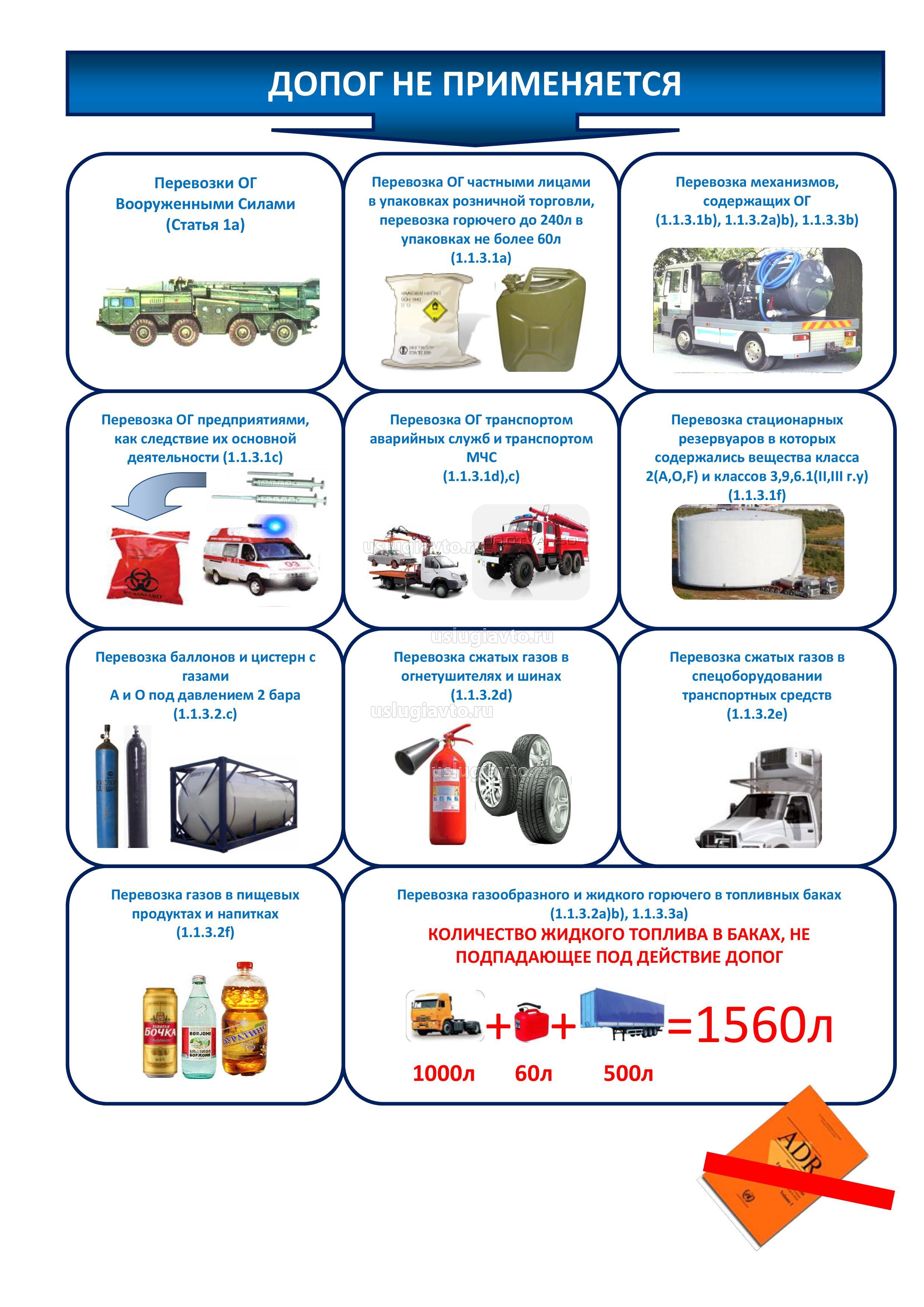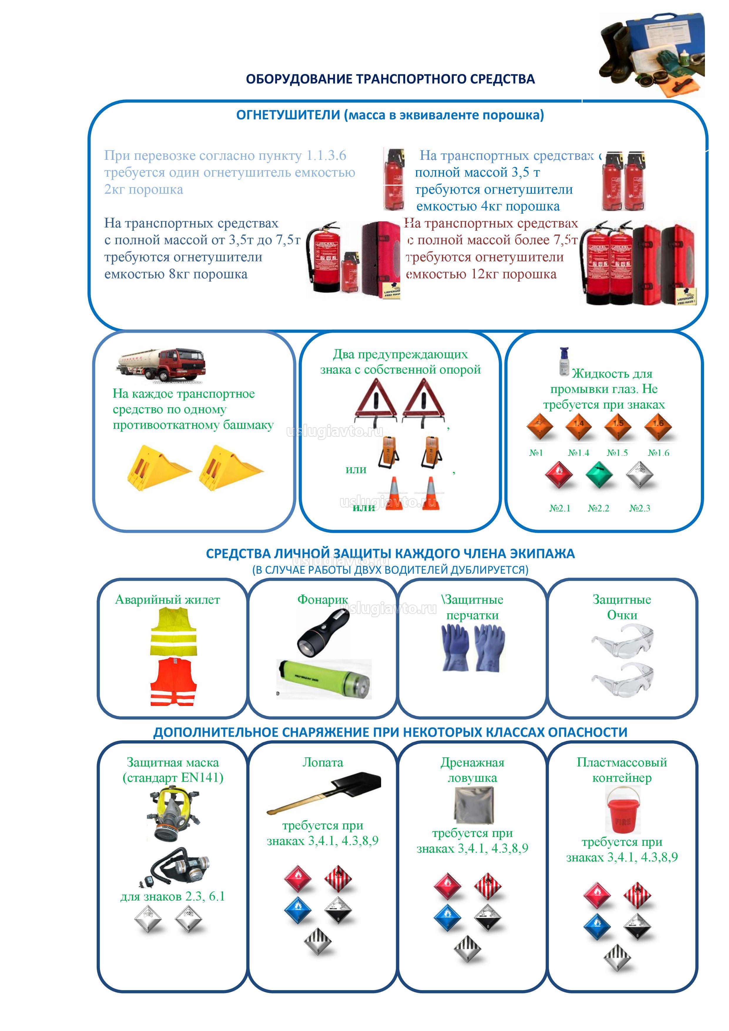 Список дополнительного оборудования и средств индивидуальной защиты приведен в разделе 8.1.5 ДОПОГ.