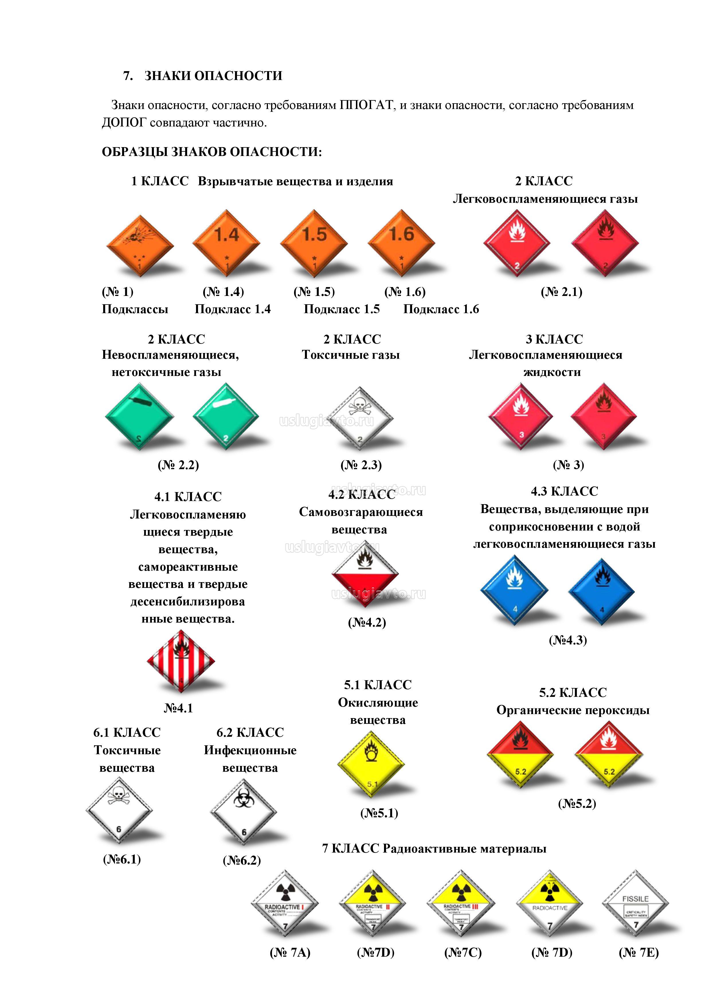 - идентификация класса опасного груза в зависимости от вида опасности