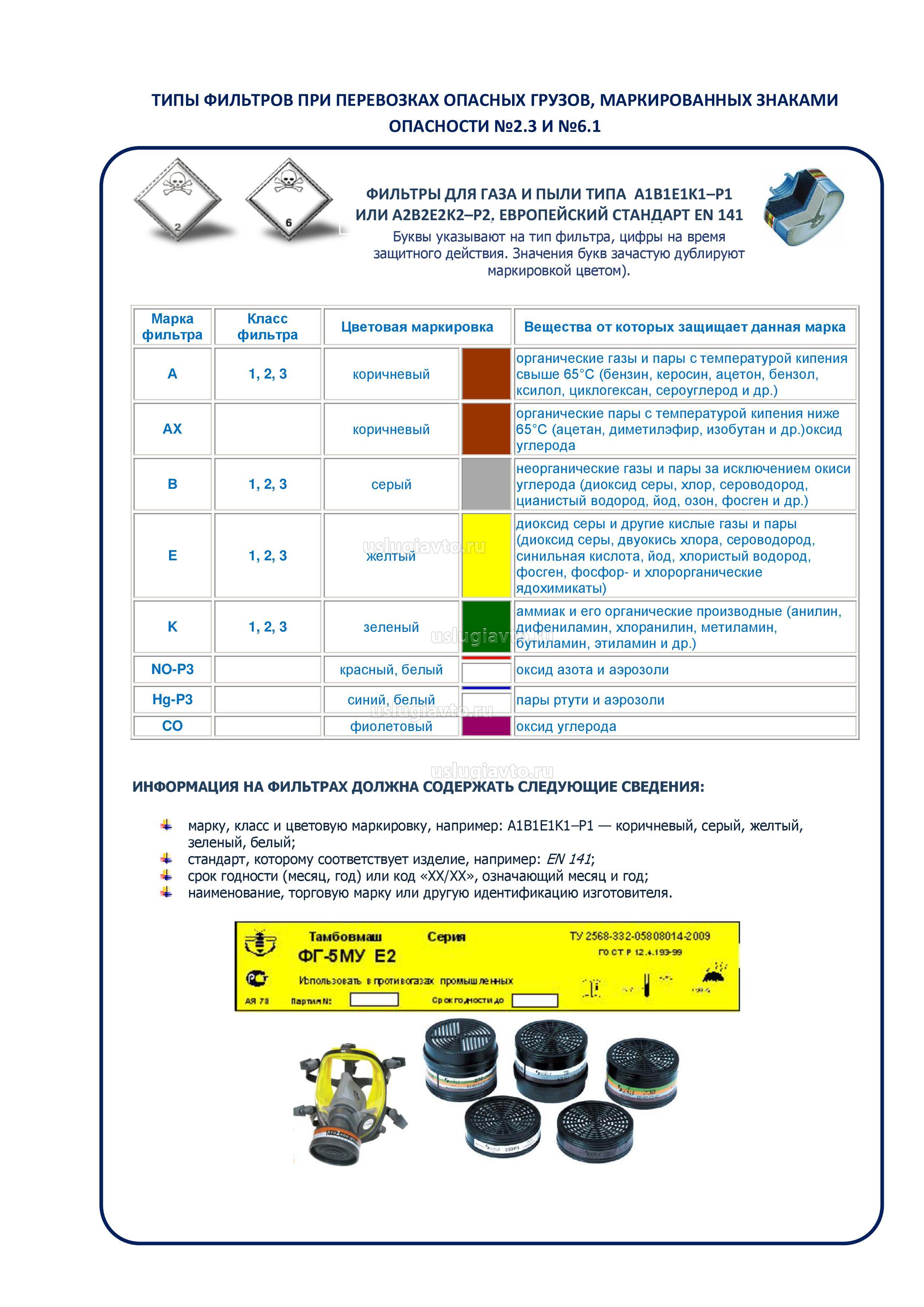 - типы фильтров используемых для перевозки опасных грузов АТ
