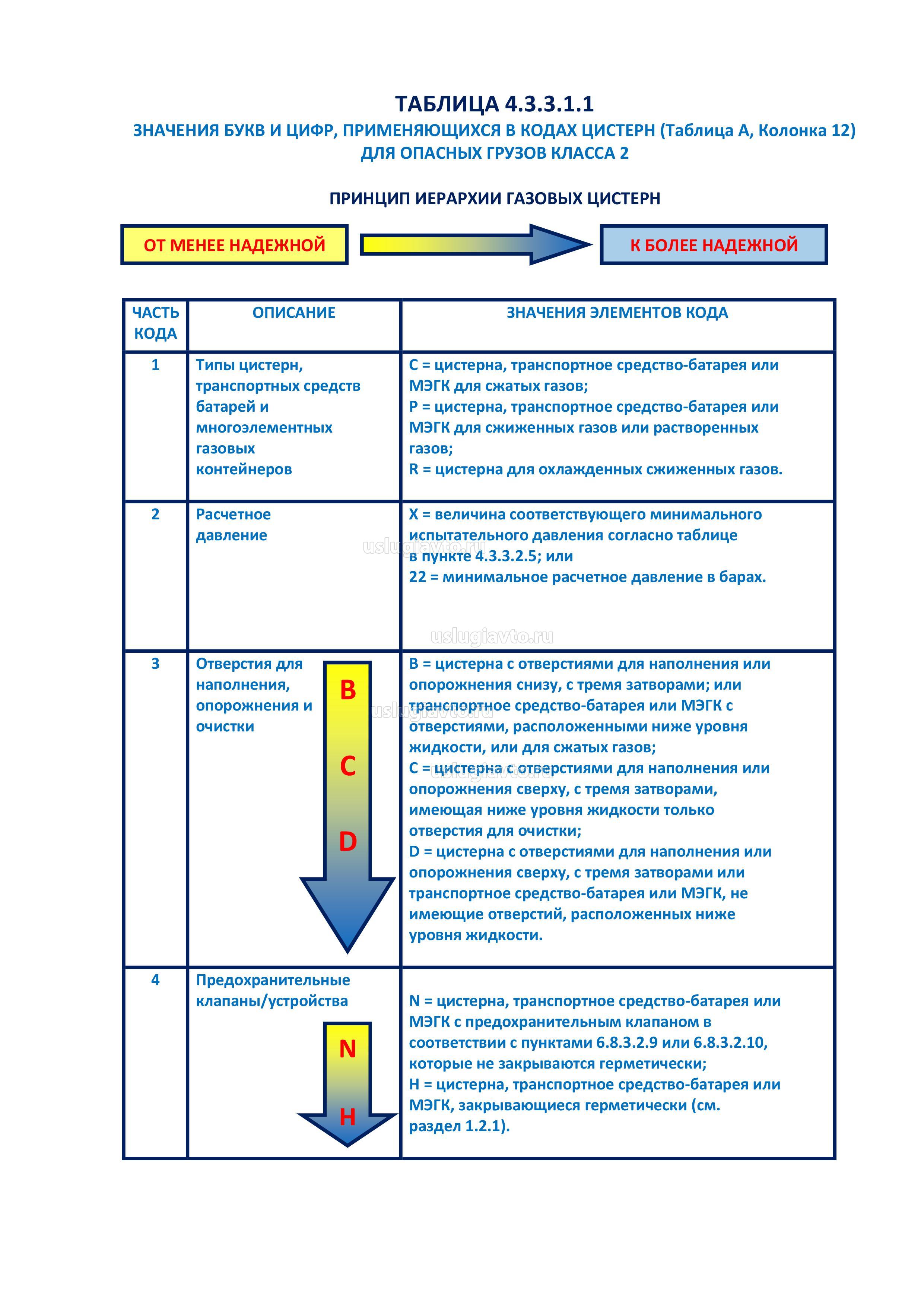 Коды цистерн для опасных грузов (газов) в зависимости от их характеристик