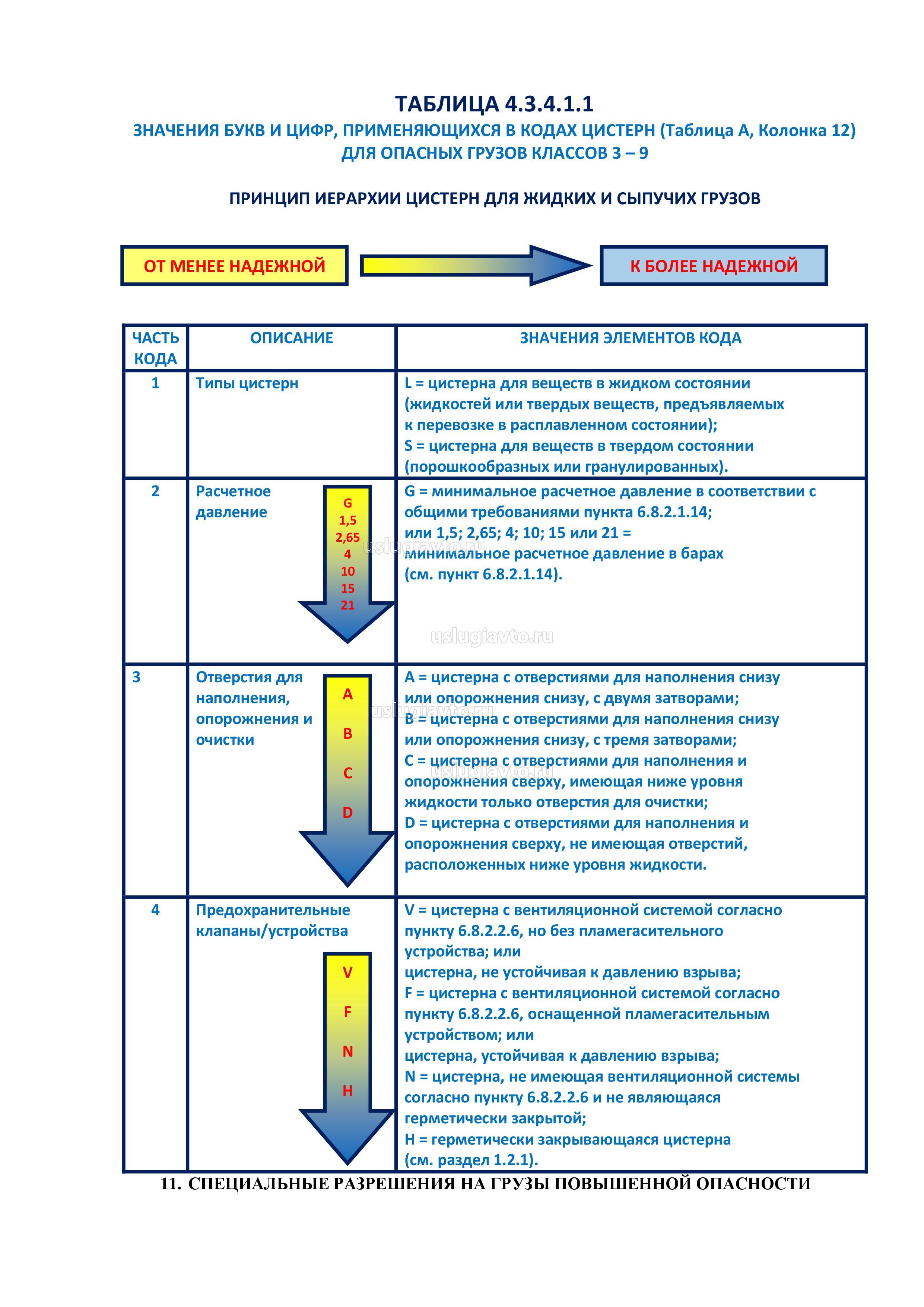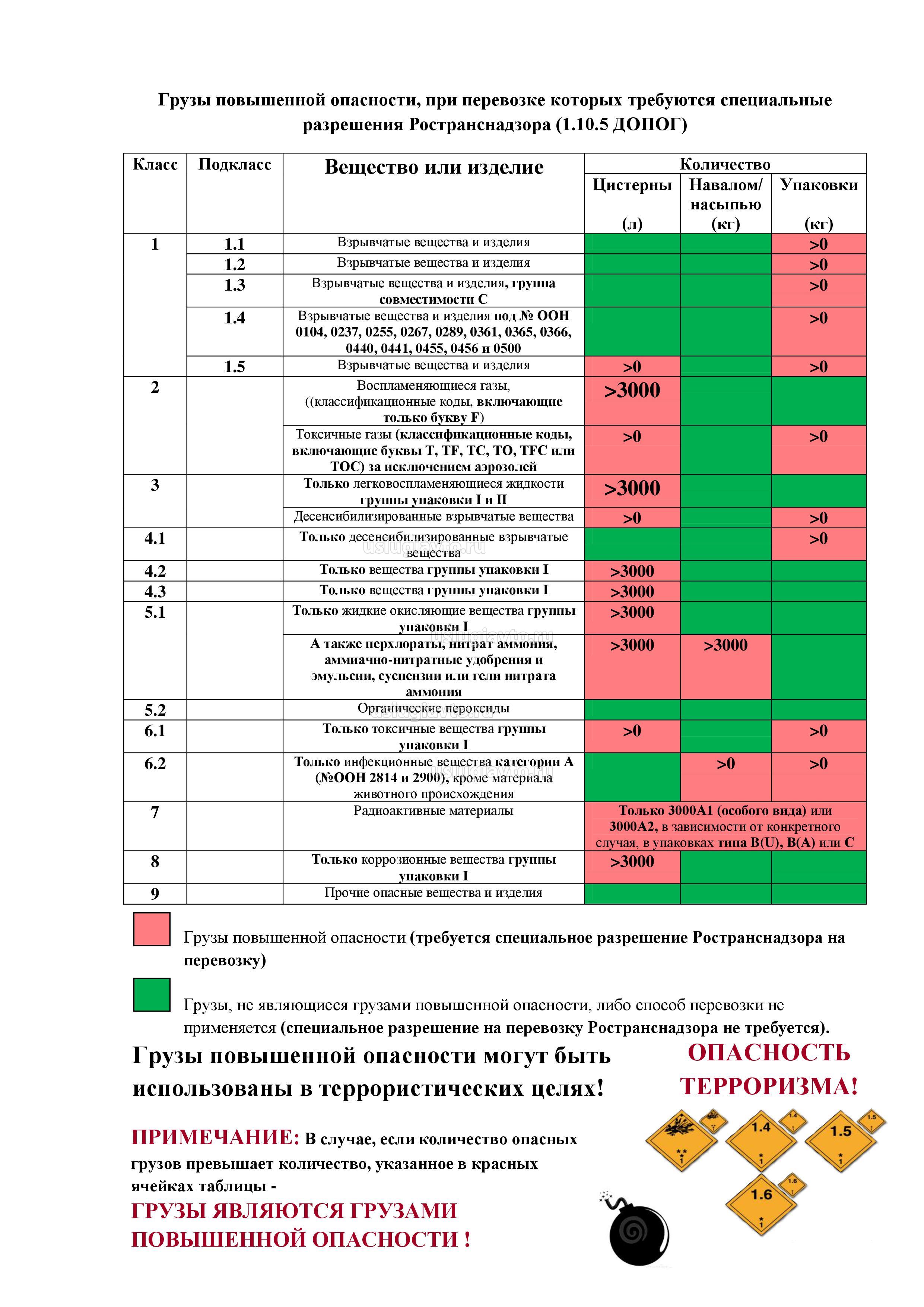 - таблица грузов повышенной опасности