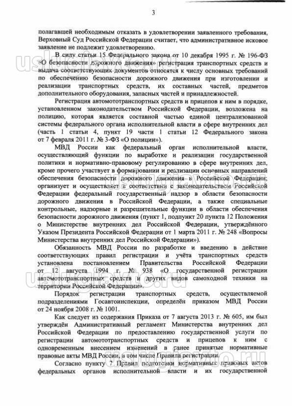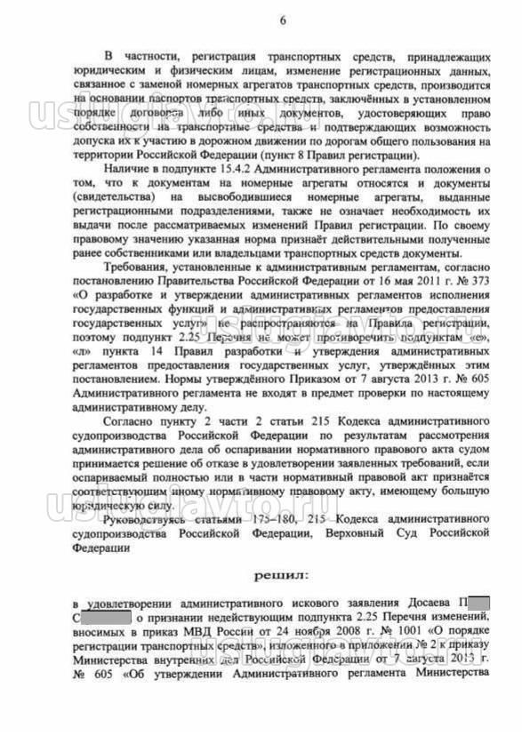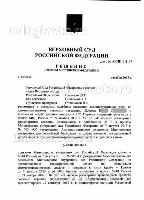 Обжалование п.2.25 приложения №2 Приказа МВД РФ № 605 от 07.08.13