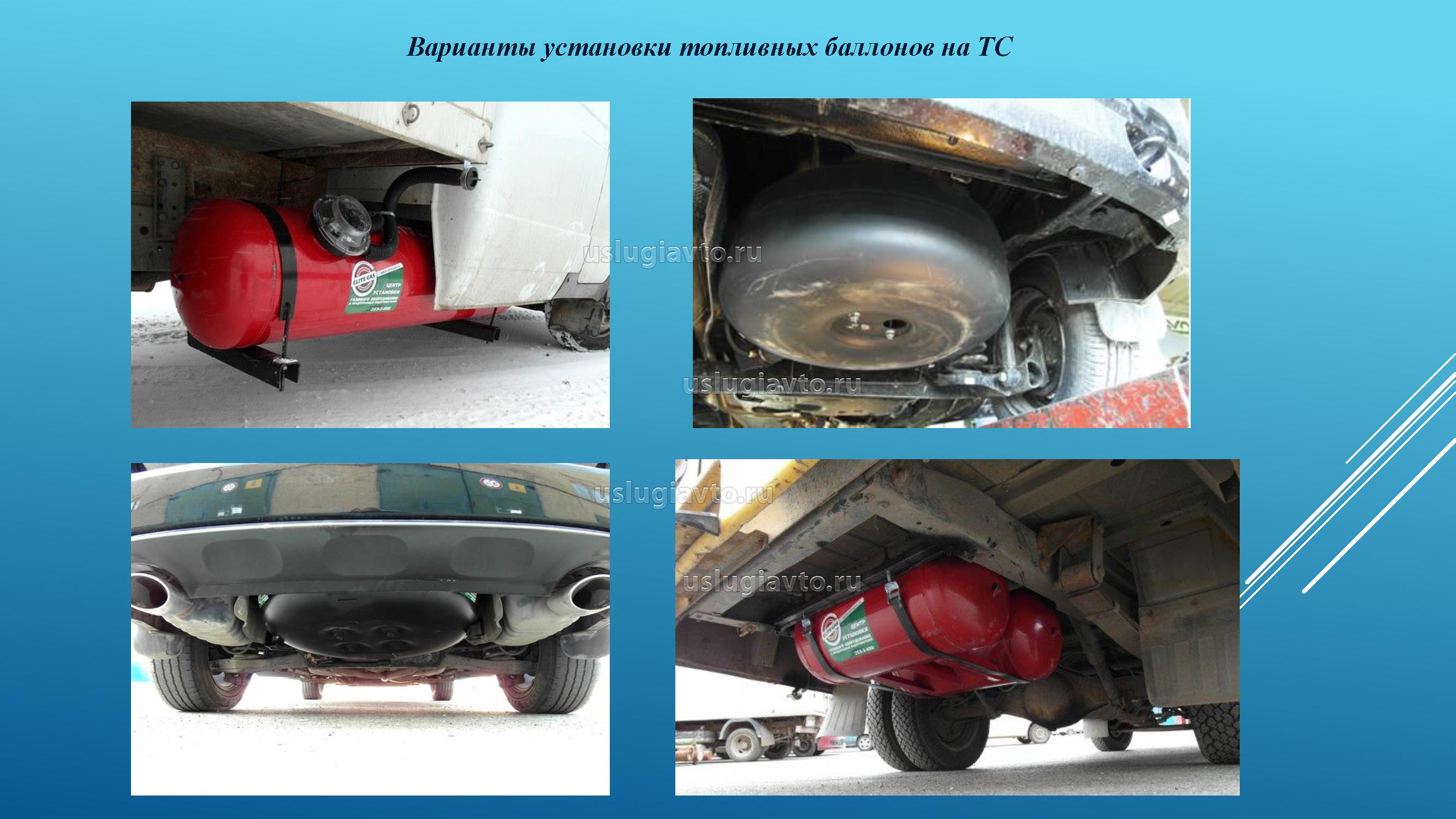 Как показывает зарубежный опыт у каждой страны ЕС выработаны свои нормативные документы по размещению и защите баллона. Например, минимально допустимое расстояние от земли до баллона по итальянским нормативам представлены в протоколе 4043-МОТ2/С и составляют для категорий М2, M3,N2,N3 – 200мм, M1,N1,L4,L5 – 155 мм, баллоны должны быть отделены от глушителя и выхлопной трубы посредством металлического листа или аналогичного материала толщиной 1 мм. Вот эти параметры проконтролировать можно!!!