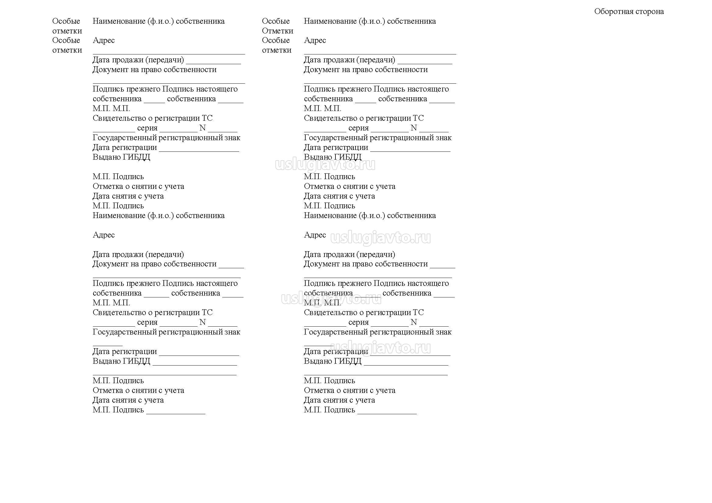Форма дубликата ПТС - образец 2018 г. оборотная сторона