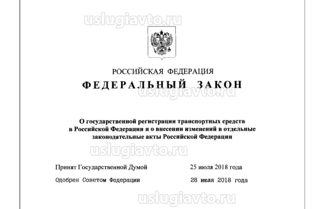 Закон о государственной регистрации транспортных средств, вступает в силу 2.08.2019 г.