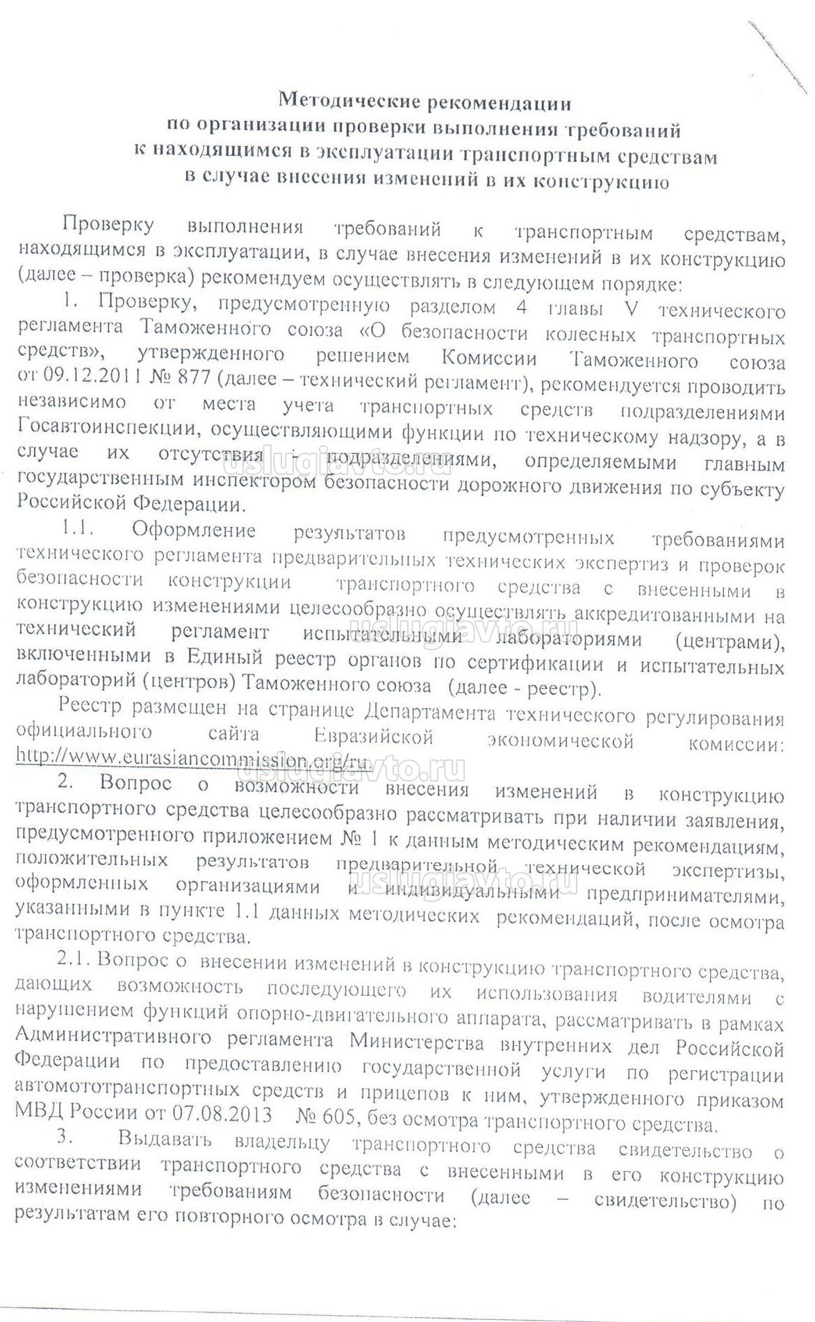 В связи с выходом Методических рекомендаций по организации проверки выполнения требований к находящимся в эксплуатации транспортным средствам в случае внесения изменений в их конструкцию открываю новую тему