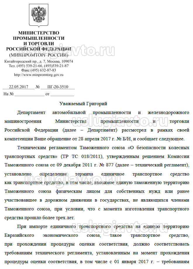 4) Прошу сообщить, правомерно ли выпускать в обращение на территории Российской Федерации единичные транспортные средства, если не соблюден порядок их оборудования аппаратурой ЭРА ГЛОНАСС, указанный в действующем ТР ТС 018/2011? Если вопросы в данном обращении не относятся к компетенции Росстандарта, прошу согласно ч.3 ст.8 Федерального закона от 02.05.2006 N 59-ФЗ направить данное обращение в соответствующий орган или соответствующему должностному лицу, в компетенцию которых входит решение поставленных в обращении вопросов, с уведомлением меня о переадресации обращения.