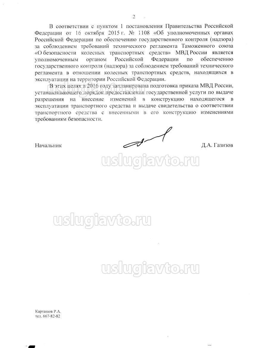Нужна Ваша помощь, при переоборудовании столкнулся с проблемой... Переоборудовал Камаз самосвал в лесовоз с гидроманипулятором в условиях спец. предприятия. Что сделано: Передвинута задняя тележка до колесной базы 4400, увеличен задний свес, установлена сертифицированная лесовозная площадка и гидроманипулятор на задний свес. Данная машина этой модели и с этой базой существует, т.е нового мы ничего не изобрели и повторюсь все сделано в условиях завода... Мною получено заключение, где все указано что я собираюсь сделать, с положительным выводом, далее написано заявление, которое подписано в ГИБДД. Далее сделано переоборудование, выдана заявление декларация, все сертификаты включая на гидроманипулятор, площадку, элементы торм. системы т.к удлинялись трубопроводы, проводку и даже на металл и св. проволоку. На основание всего этого получен протокол с положительными выводами. После всего в ГИБДД мне написали свидетельство о переоборудовании и отправили на подпись в обл. ГИБДД где в подписими мне отказали, т.к. как мне сказали что я создал новое транспортное средство а не переоборудовал его... Кстати предприятие которое делало переоборудование, делали данное изменение не однократно и все регистрировалось до вступления новых правил...