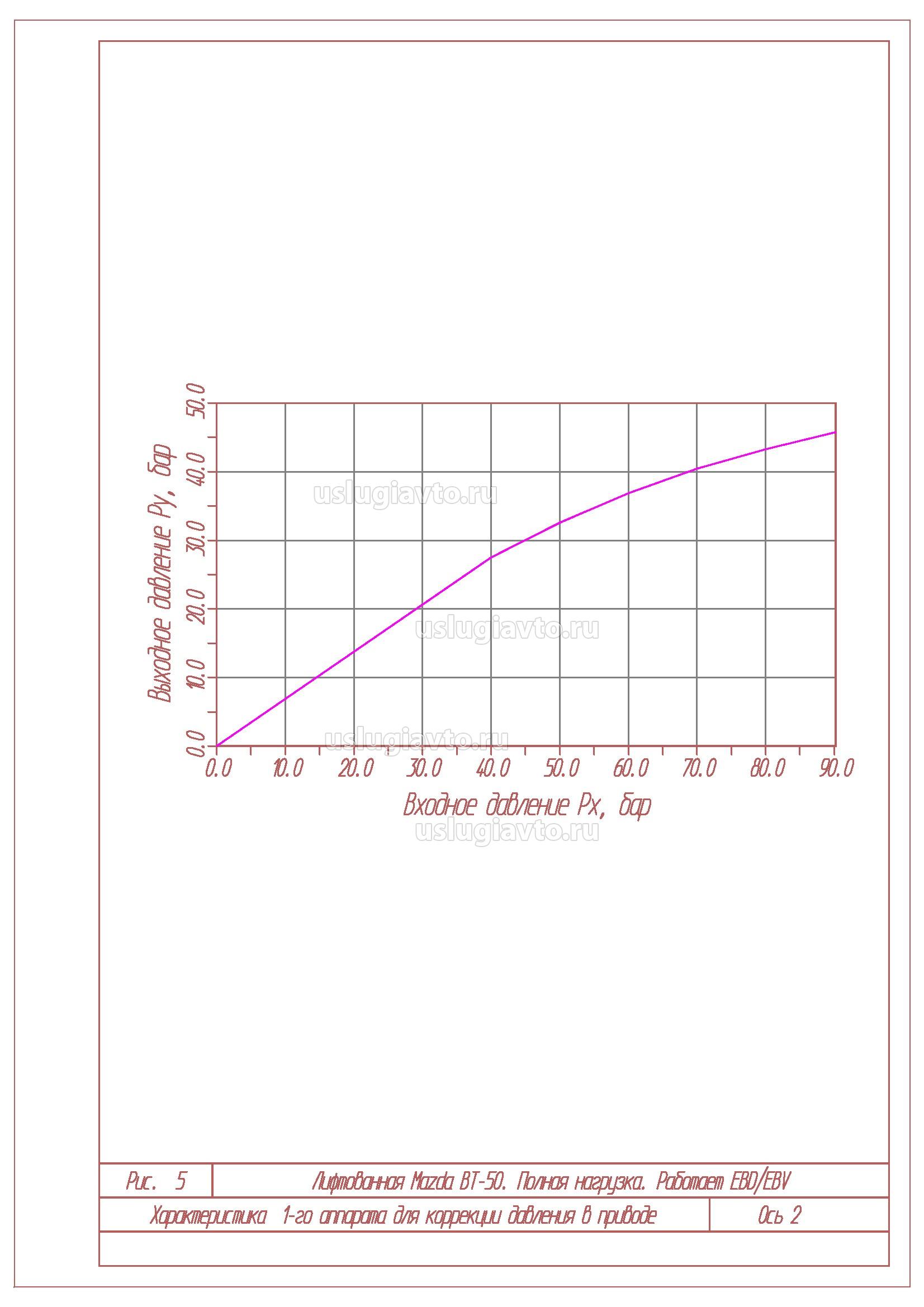 - Рис. 5 Характеристика 1-го аппарата для коррекции давления в приводе Ось 2. Полная нагрузка. Работает EBD/EBV