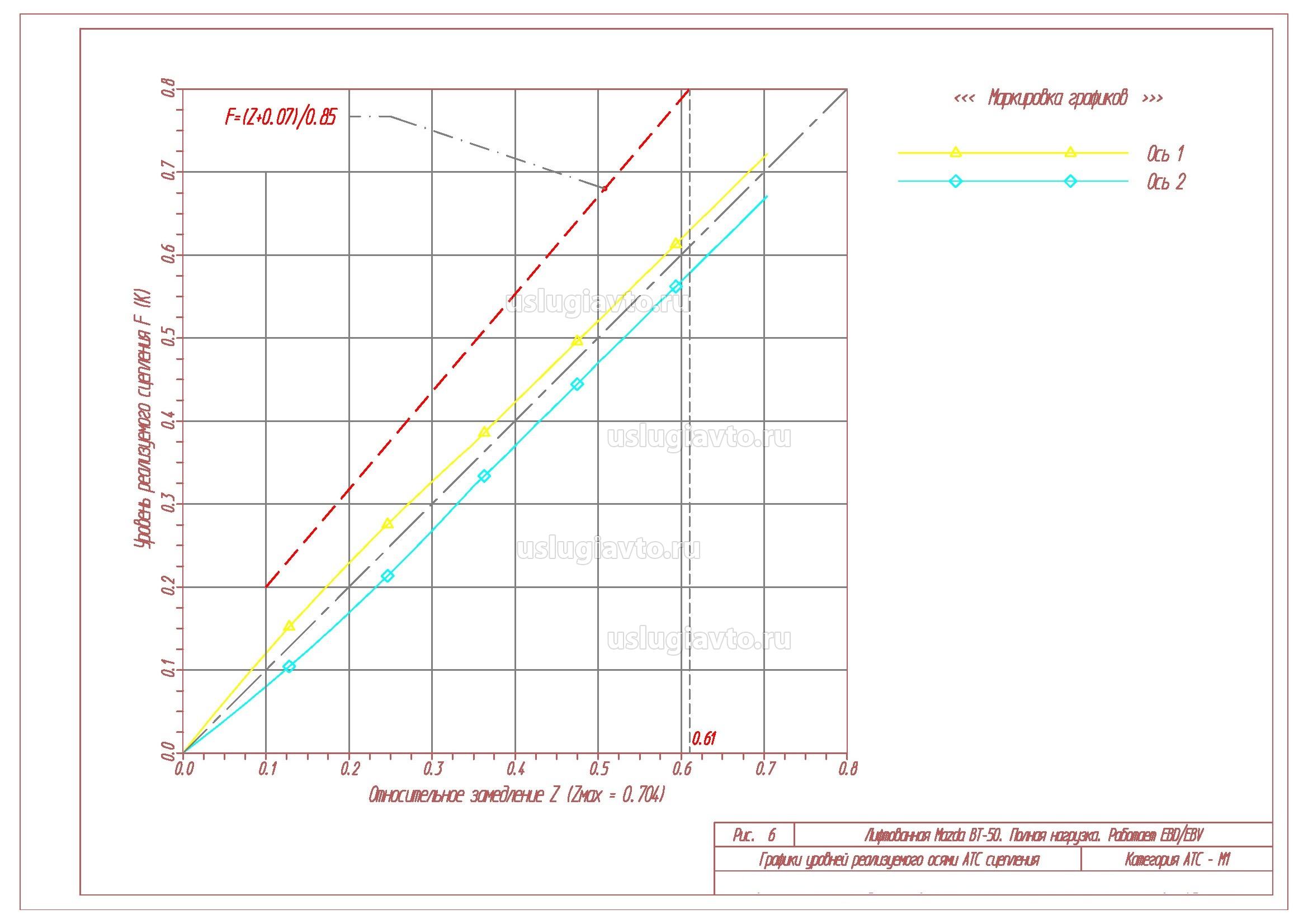 6. Выводы и рекомендации6.1. При корректном функционировании программы EBD / EBV в контроллере гидроблока тормозного привода характеристики тормозной системы рассматриваемого автомобиля с регламентированными уровнями загрузки будут соответствовать нормативам приложений 3 и 5 Правил № 13-Н ЕЭК ООН по реализуемой эффективности тормозов (см. п.п. 4) и по устойчивости / управляемости затормаживаемого АТС (см. п.п. 3).