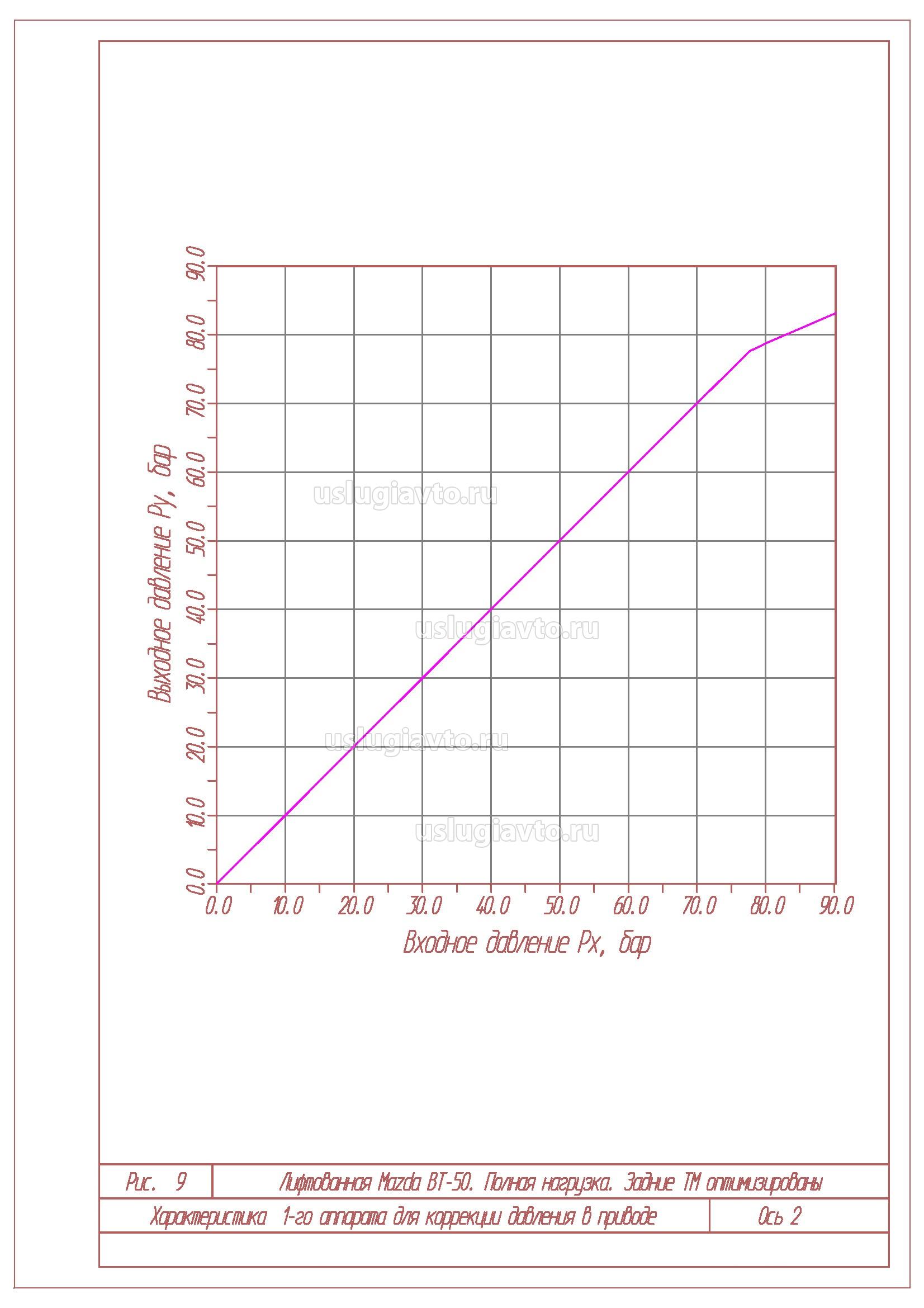 - Рис. 7 Характеристика 1-го аппарата для коррекции давления в приводе Ось 2. Задние тормозные механизмы оптимизированы.