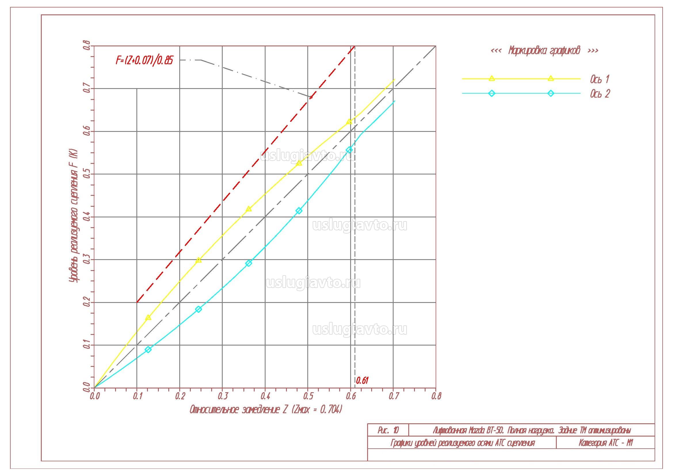 - Рис. 11 Уровень реализуемого осями сцепления в состоянии разрешенной максимальной массы. Работают только два тормозных механизма по диагонали.