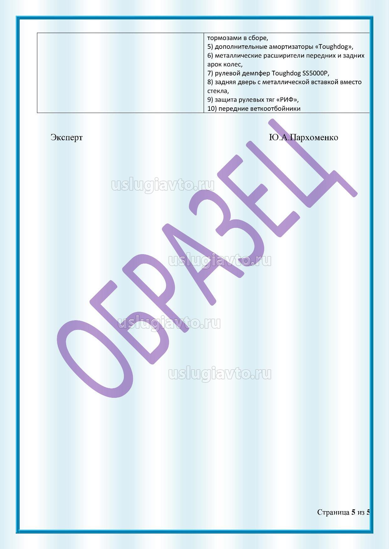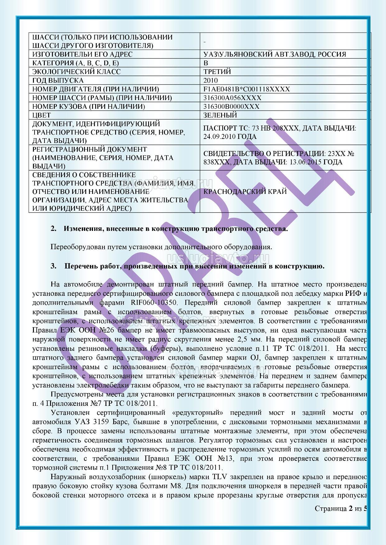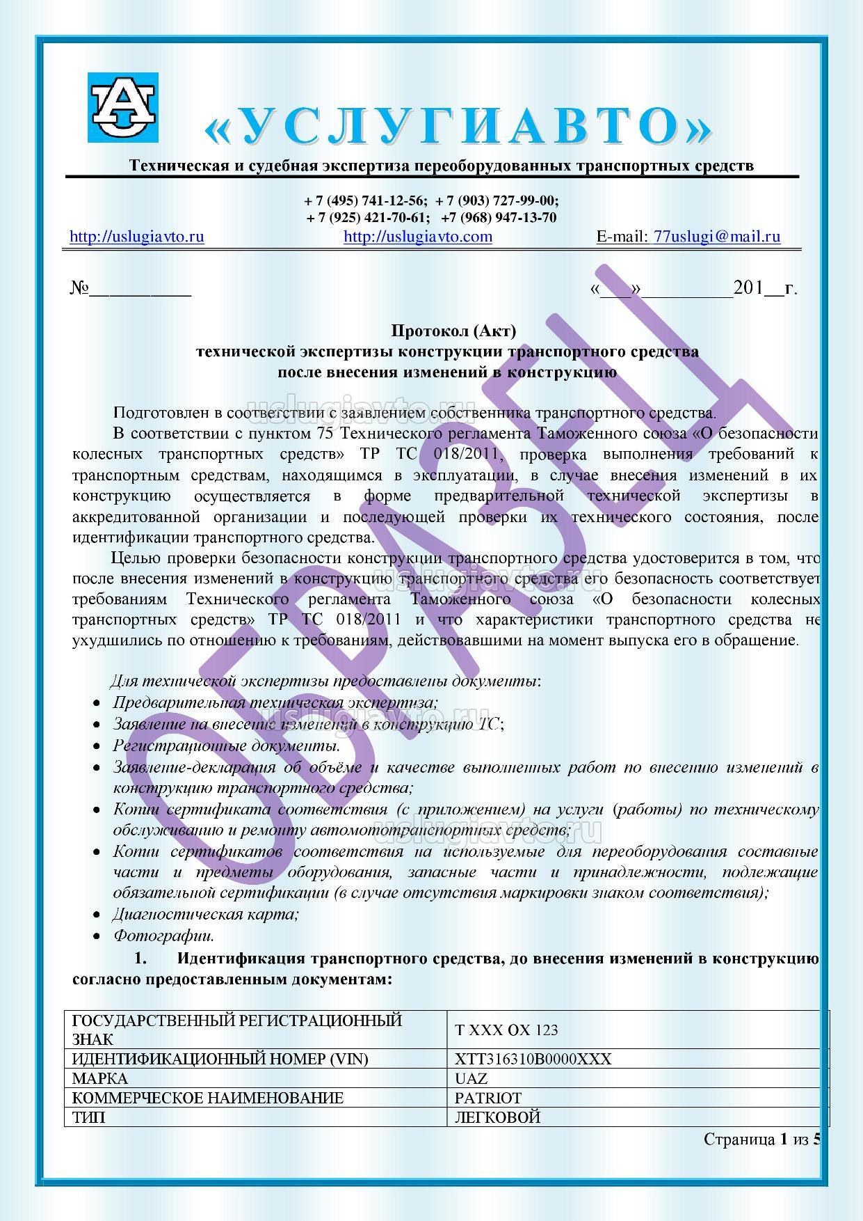 Протокол после переоборудования Уаз Патриот в экспедиционник