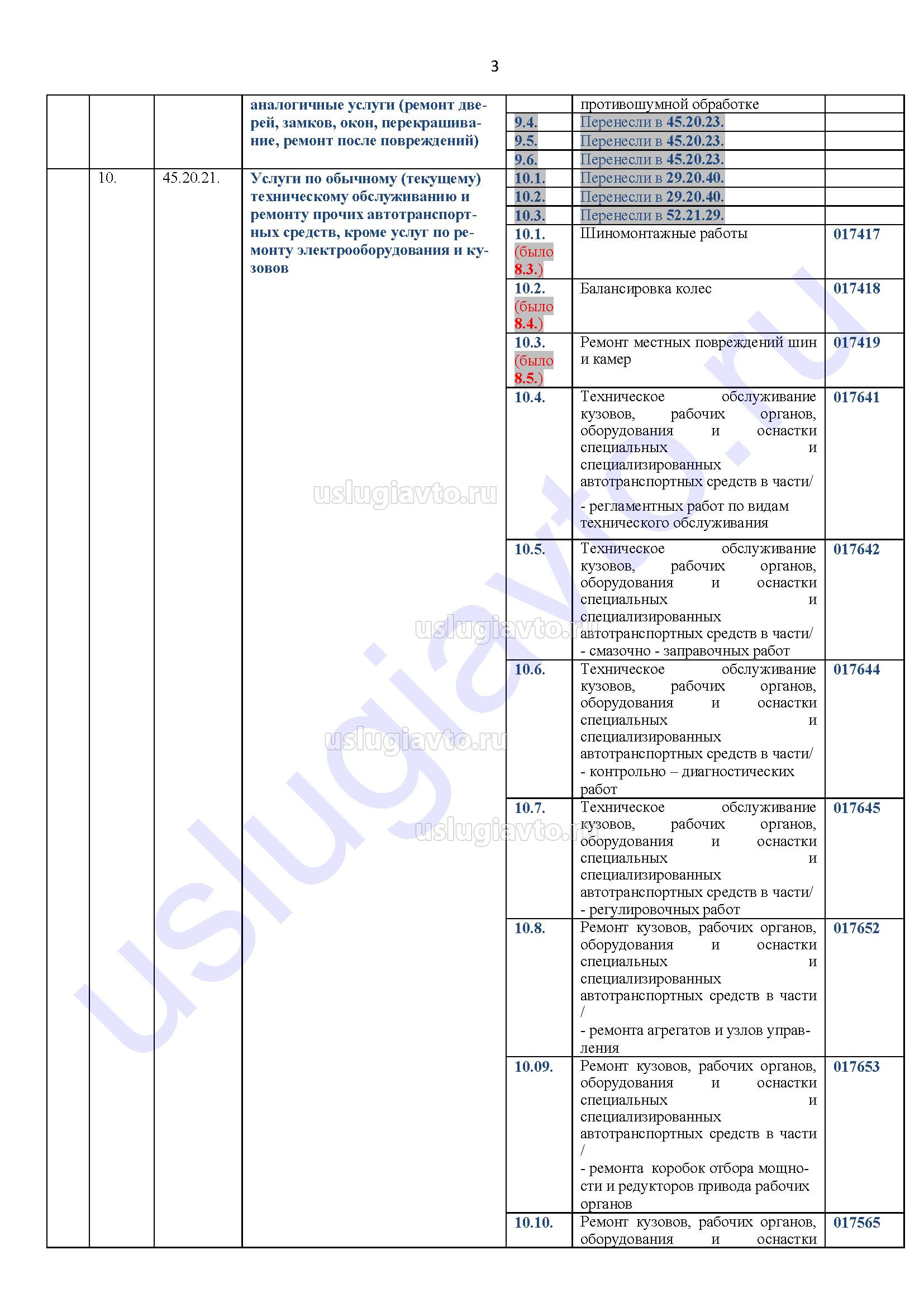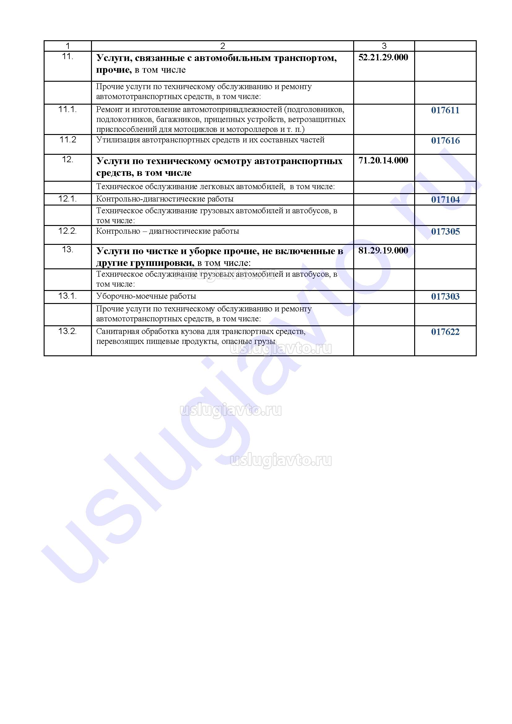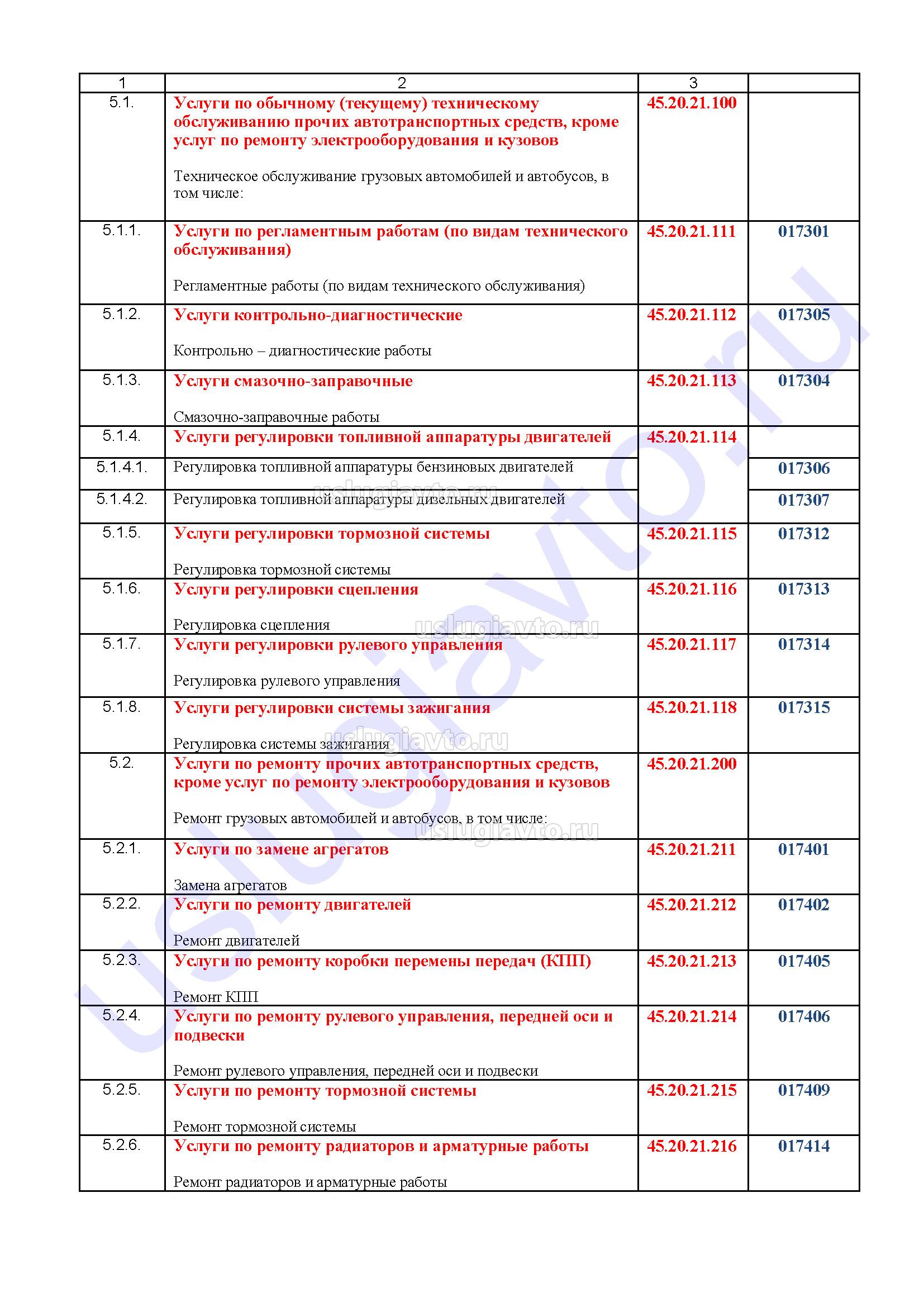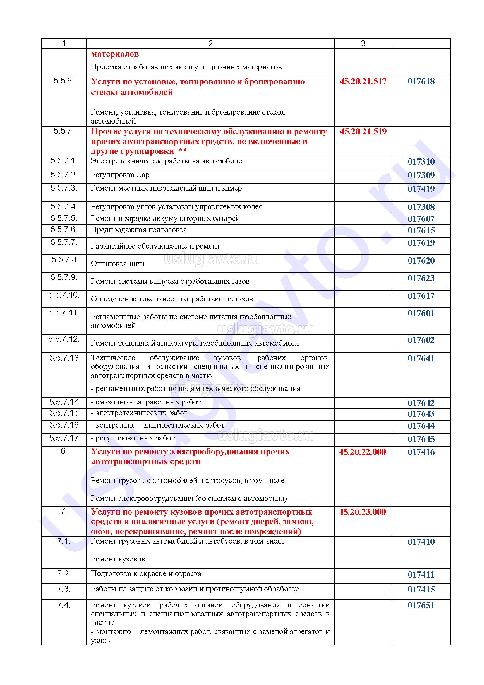 Реестр соответствия кодов ОКПД2 и ОКУН в Области аккредитации по Техническому обслуживанию и ремонту автомототранспортных средств.