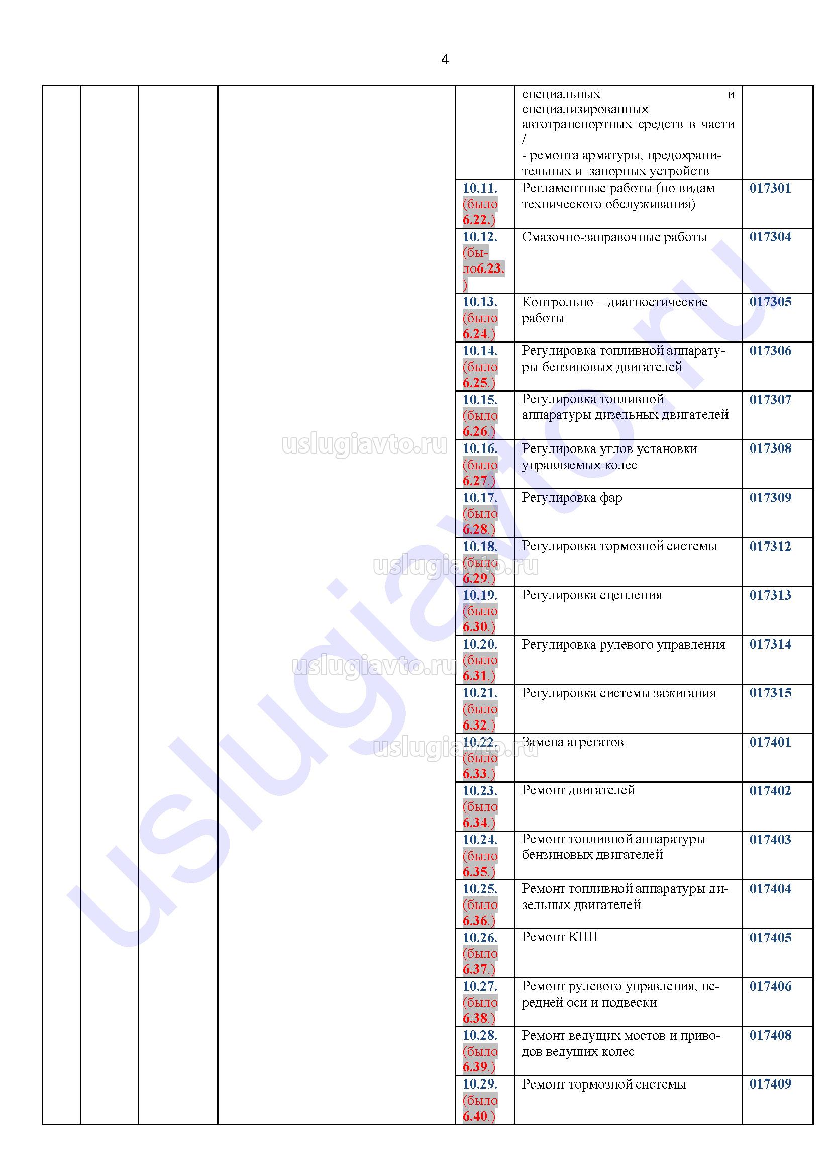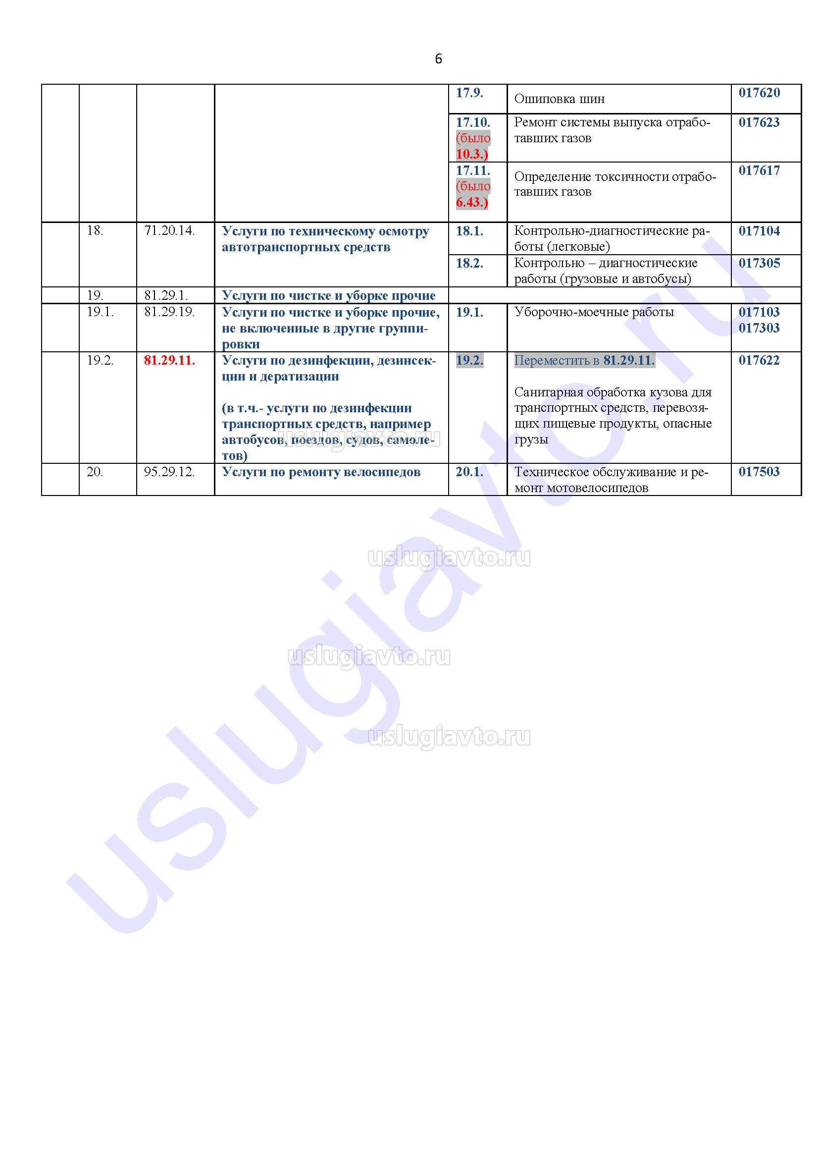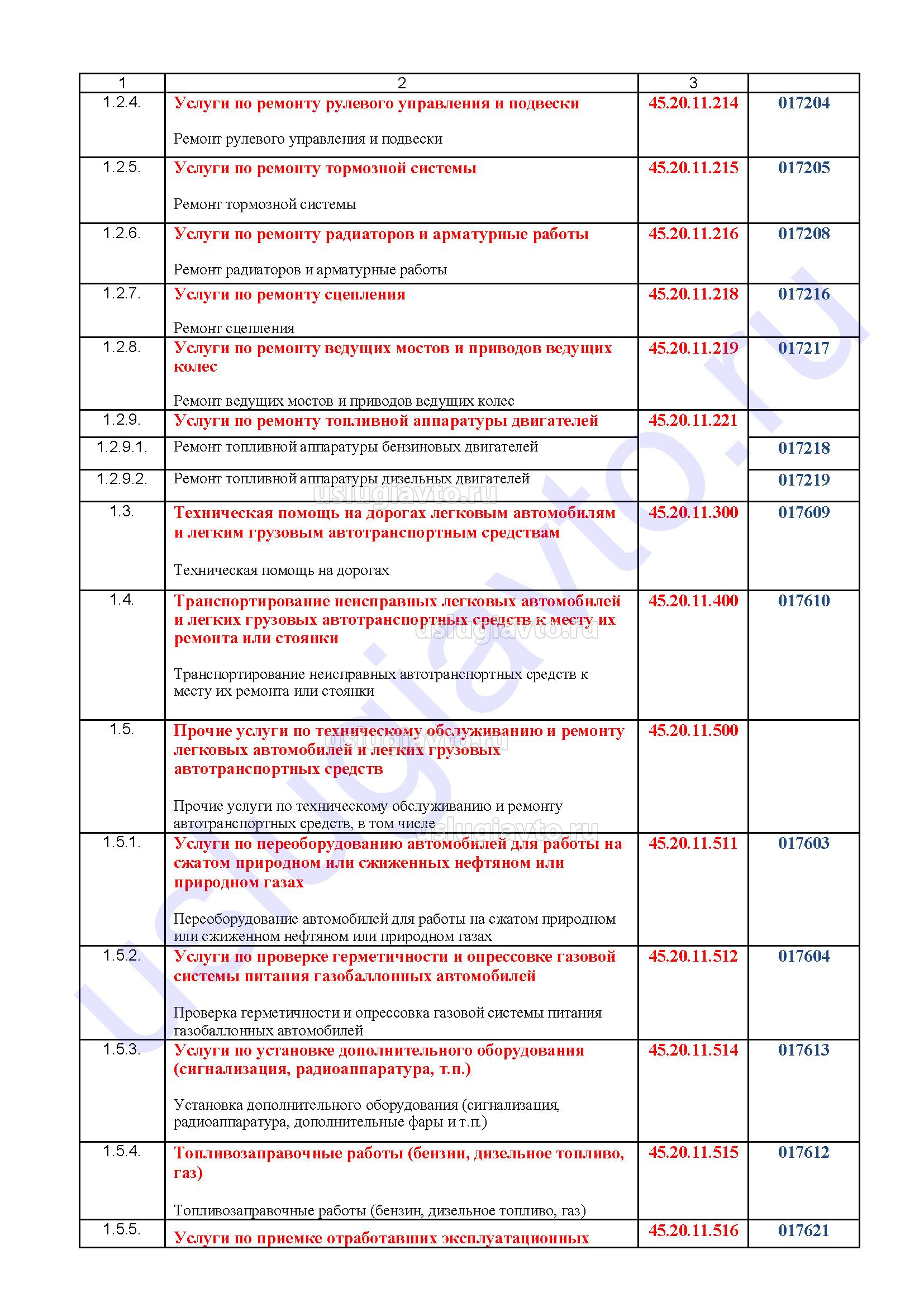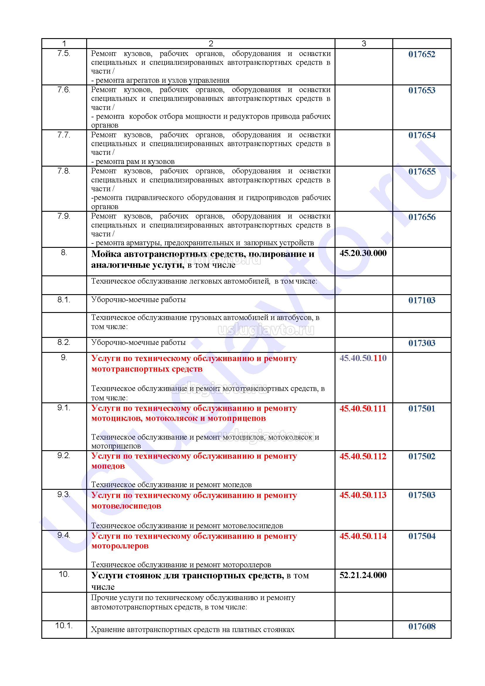 Реестр соответствия кодов ОКПД2 и ОКУН в Области аккредитации по Техническому обслуживанию и ремонту автомототранспортных средств.