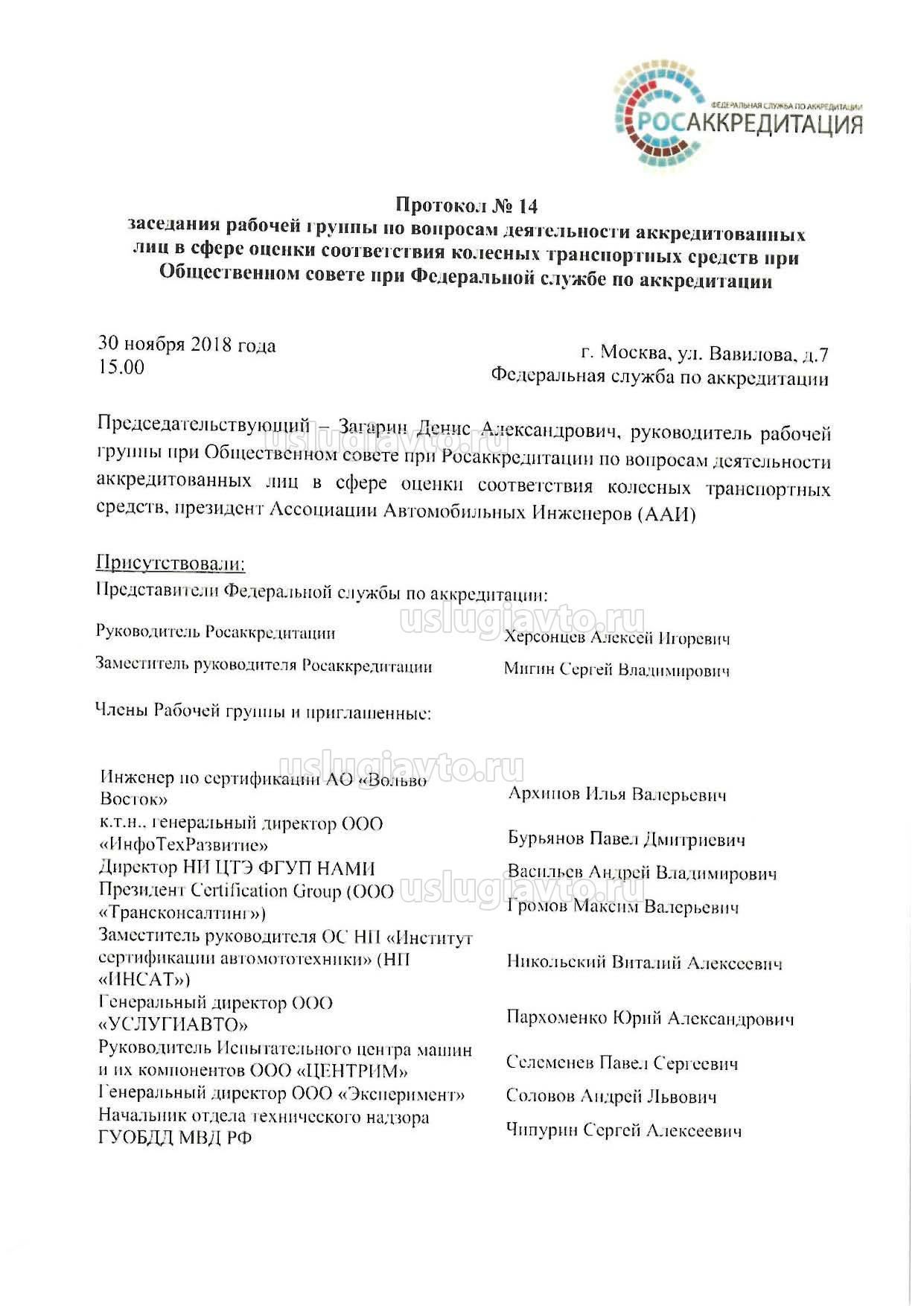 Принято решение поручить Рабочей группе по вопросам деятельности аккредитованных лиц в сфере оценки соответствия колесных транспортных средств при Общественном совете при Федеральной службе но аккредитации в I квартале 2019 г. рассмотреть практику применения Временною порядка без оснащения аппаратурой вызова экстренных оперативных служб.