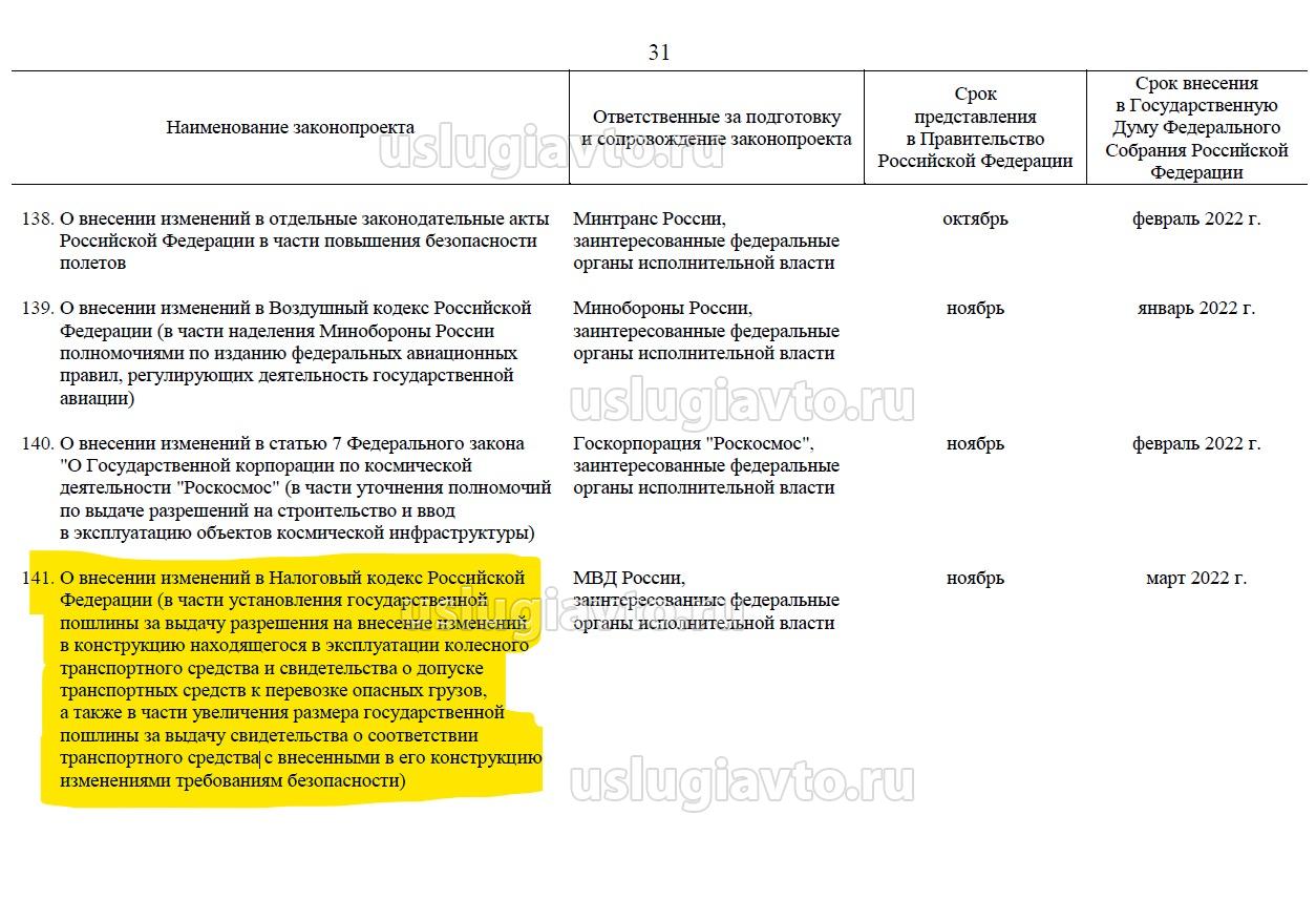 изменение госпошлины за выдачу СКТС и перевозку ОГ