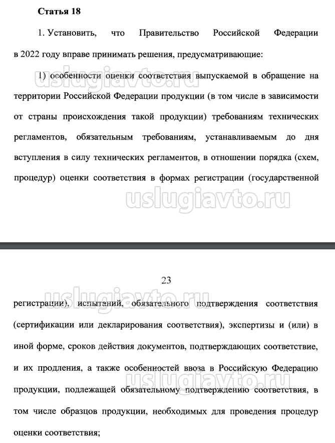 1) особенности оценки соответствия выпускаемой в обращение на территории Российской Федерации продукции (в том числе в зависимости от страны происхождения такой продукции) требованиям технических регламентов, обязательным требованиям, устанавливаемым до дня вступления в силу технических регламентов, в отношении порядка (схем, процедур) оценки соответствия в формах регистрации (государственной регистрации), испытаний, обязательного подтверждения соответствия (сертификации или декларирования соответствия), экспертизы и (или) в иной форме, сроков действия документов, подтверждающих соответствие, и их продления, а также особенностей ввоза в Российскую Федерацию продукции, подлежащей обязательному подтверждению соответствия, в том числе образцов продукции, необходимых для проведения процедур оценки соответствия;