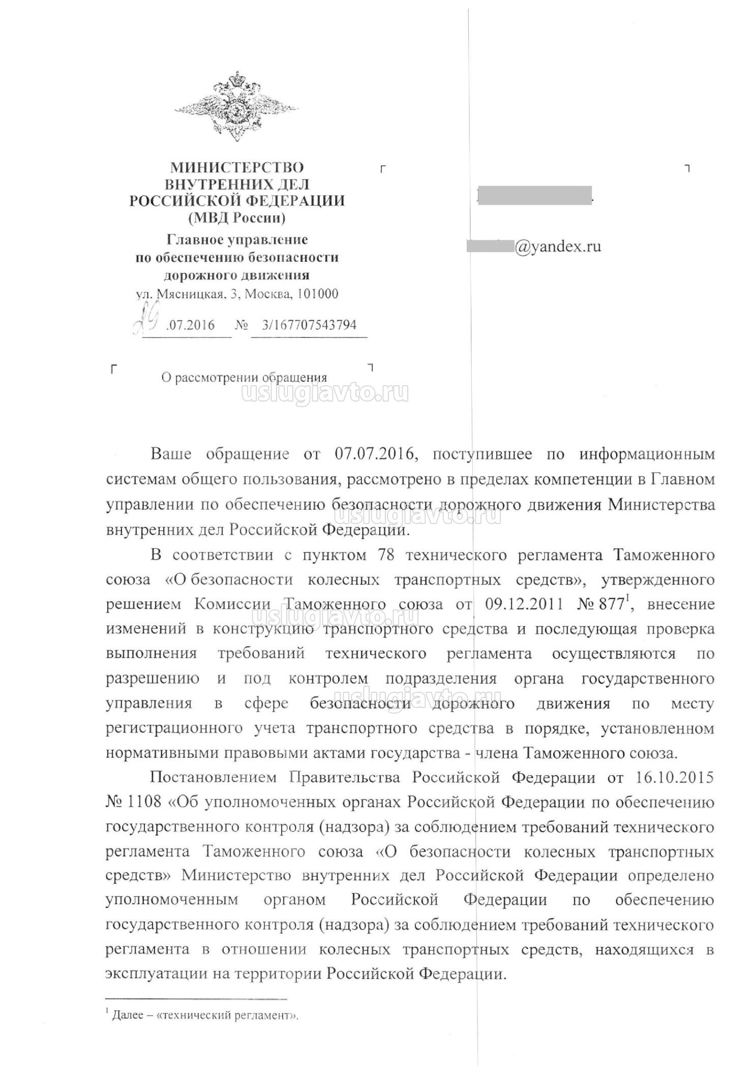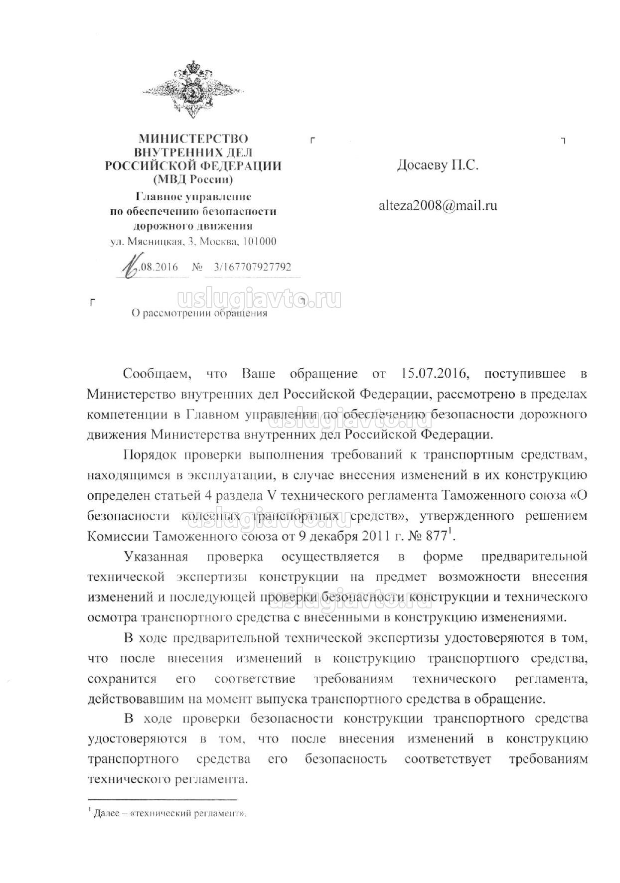 Разъяснение ГУОБДД от 16 августа 2016 года относительно раздела 4 ТР ТС 018/2011 лист 1