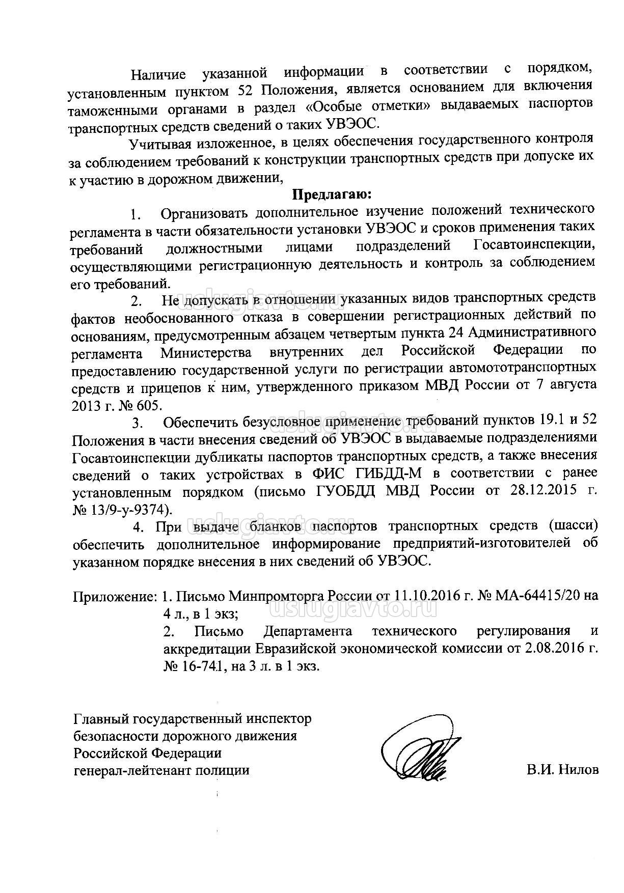 Разъяснение ГУОБДД от 16 августа 2016 года относительно раздела 4 ТР ТС 018/2011 лист 2