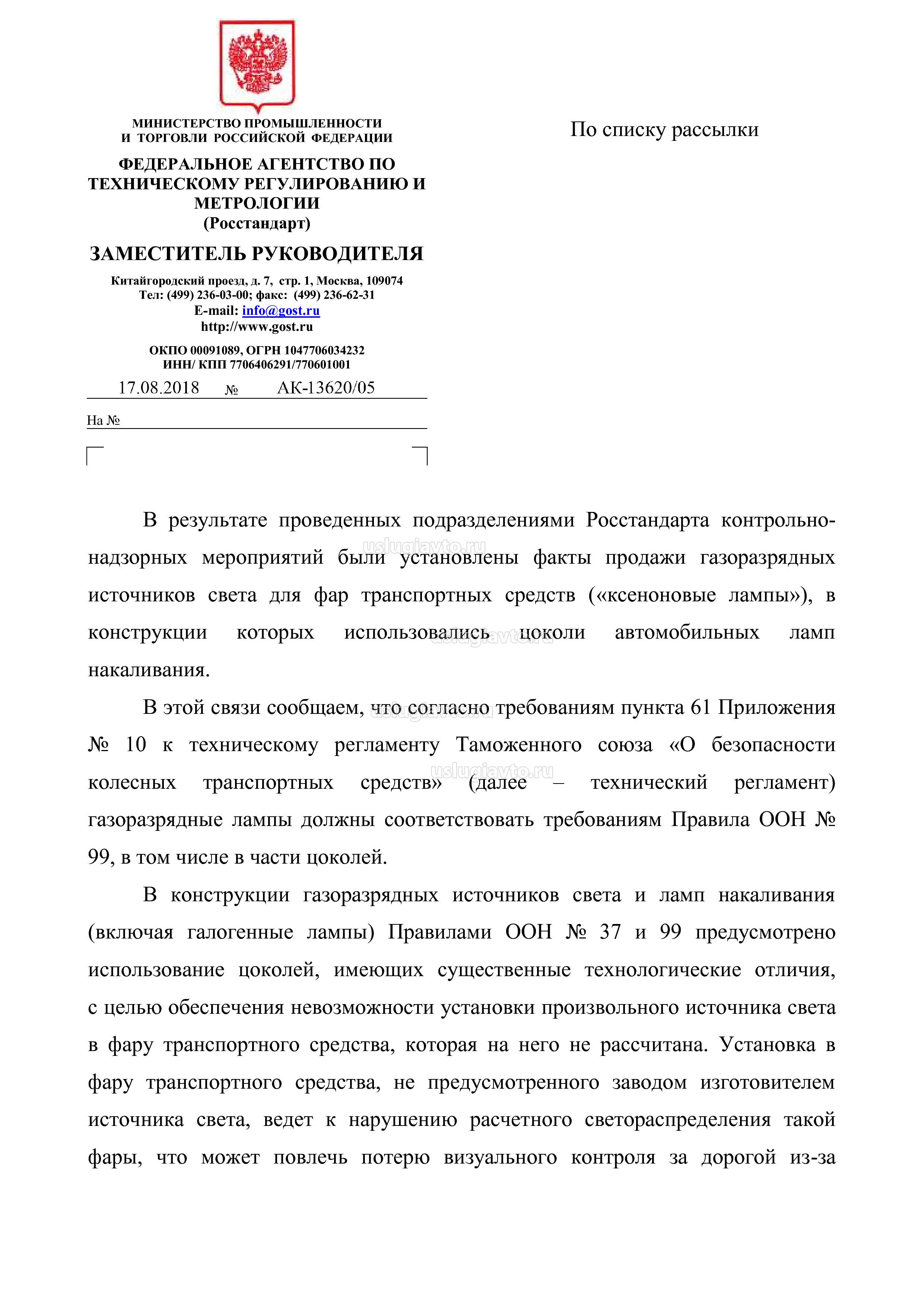 Разъяснение Росстандарта от 17.08.2018 г. № АК-13620/05 относительно фактов продажи газоразрядных источников света для фар транспортных средств («ксеноновые лампы»), в конструкции которых использовались цоколи автомобильных ламп накаливания.