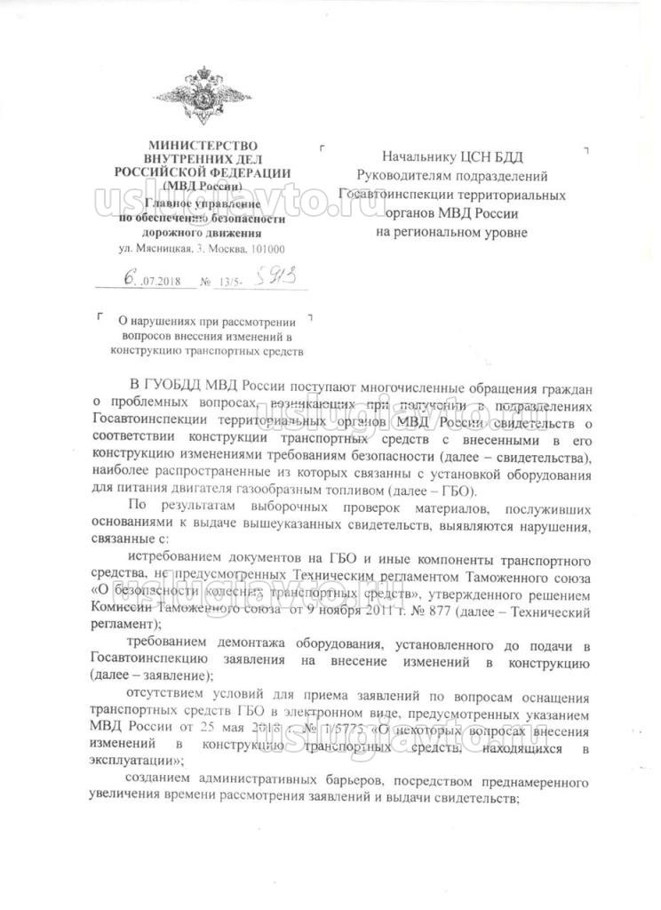 от 6.07.2018 N 13/5-5913 "О нарушении при рассмотрении вопросов внесения изменений в конструкцию транспортных средств"