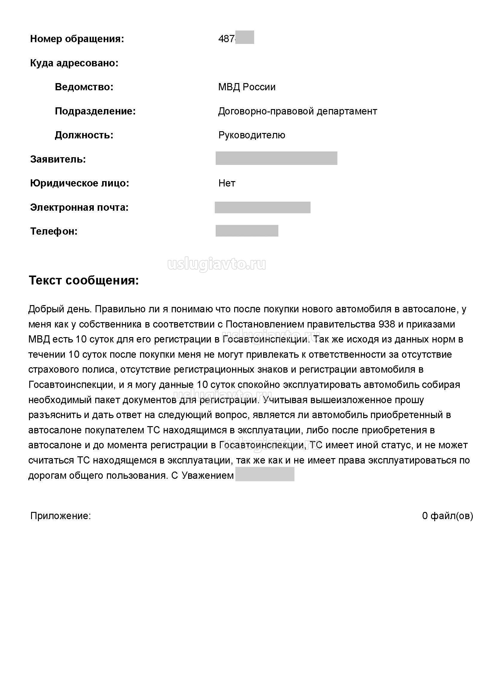 Добрый день. Правильно ли я понимаю что после покупки нового автомобиля в автосалоне, у меня как у собственника в соответствии с Постановлением правительства 938 и приказами МВД есть 10 суток для его регистрации в Госавтоинспекции. Так же исходя из данных норм в течении 10 суток после покупки меня не могут привлекать к ответственности за отсутствие страхового полиса, отсутствие регистрационных знаков и регистрации автомобиля в Госавтоинспекции, и я могу данные 10 суток спокойно эксплуатировать автомобиль собирая необходимый пакет документов для регистрации. Учитывая вышеизложенное прошу разъяснить и дать ответ на следующий вопрос, является ли автомобиль приобретенный в автосалоне покупателем ТС находящимся в эксплуатации, либо после приобретения в автосалоне и до момента регистрации в Госавтоинспекции, ТС имеет иной статус, и не может считаться ТС находящемся в эксплуатации, так же как и не имеет права эксплуатироваться по дорогам общего пользования.