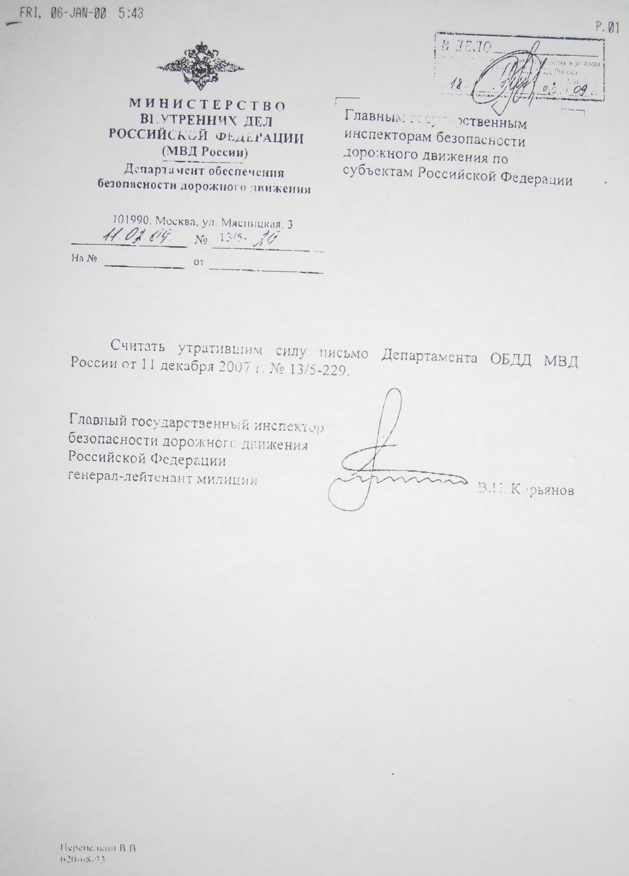 Пархоменко Юрий писал(а):письмо ДОБДД МВД РФ от 11.02.2009 г. № 13/5-20