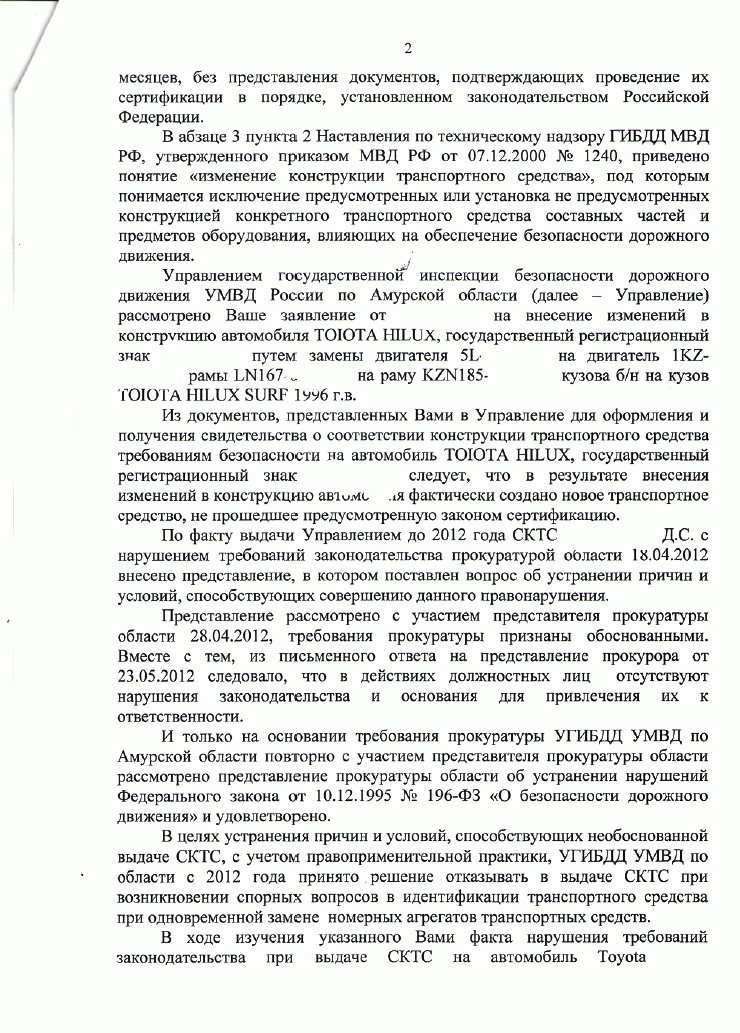 Начальник УГИБДД УМВД РФ ПО Амурской области вообще наделен какимито неограниченными возможностями: сам сочиняет определение верховного суда , получив в свой адрес представление прокуратуры имеет право рассмотреть его и неудовлетворить , мотивируя это тем , что раньше он еще не сочинил определение верховного суда и не почитал определение кассационного суда г.Хабаровска , но когда он всеже все это изучил ,то приказ МВД РФ №1240 вдруг начал понимать совсем по другому (прекратил выдачу ССКТС)