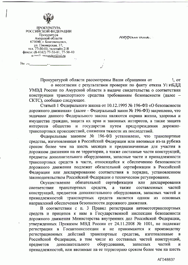 Это и не удивительно так как в приказе МВД РФ определено : рассмотрение заявлений на внесение изменений в конструкцию зарегистрированных тс производится по месту регистрации данных тс , Амурская область по территории большая , начальника это не волнует ,в нарушение приказа МВД РФ он требует представлять тс в УГИБДД , гражданам нередко приходится преодолевать расстояния более 700 км до областного центра.