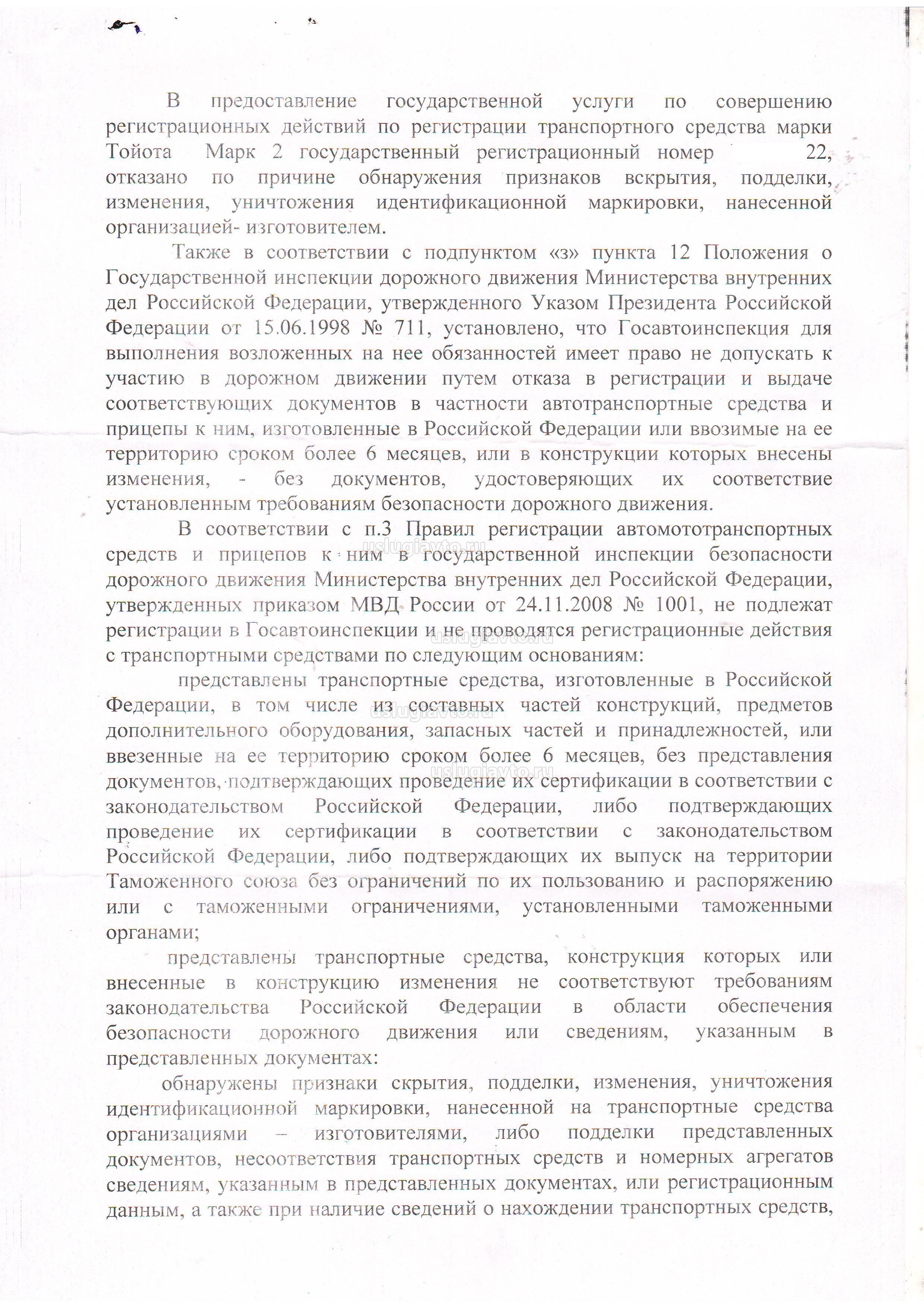 Вернуться в Отказы в регистрации ТС
