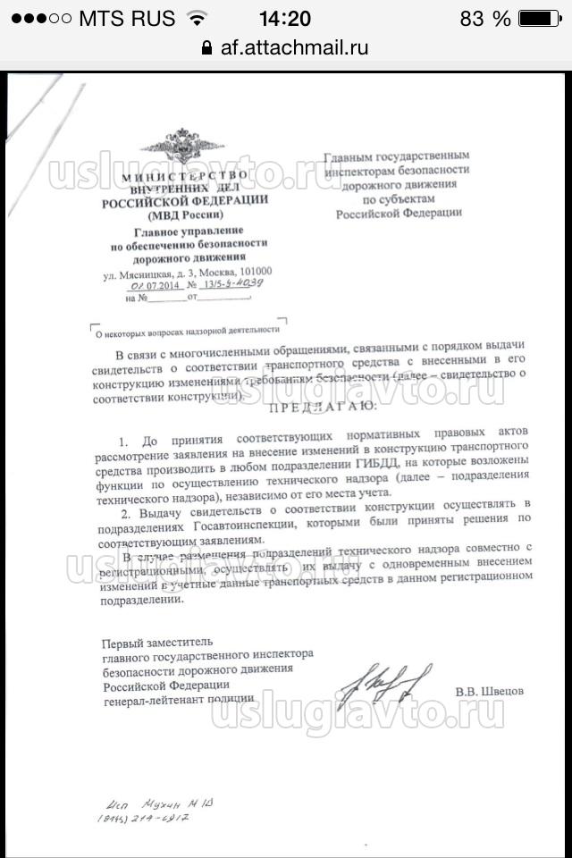 Министерства внутренних дел Российской Федерации свидетельство о соответствии транспортного средства с внесенными в его конструкцию изменениями требованиям