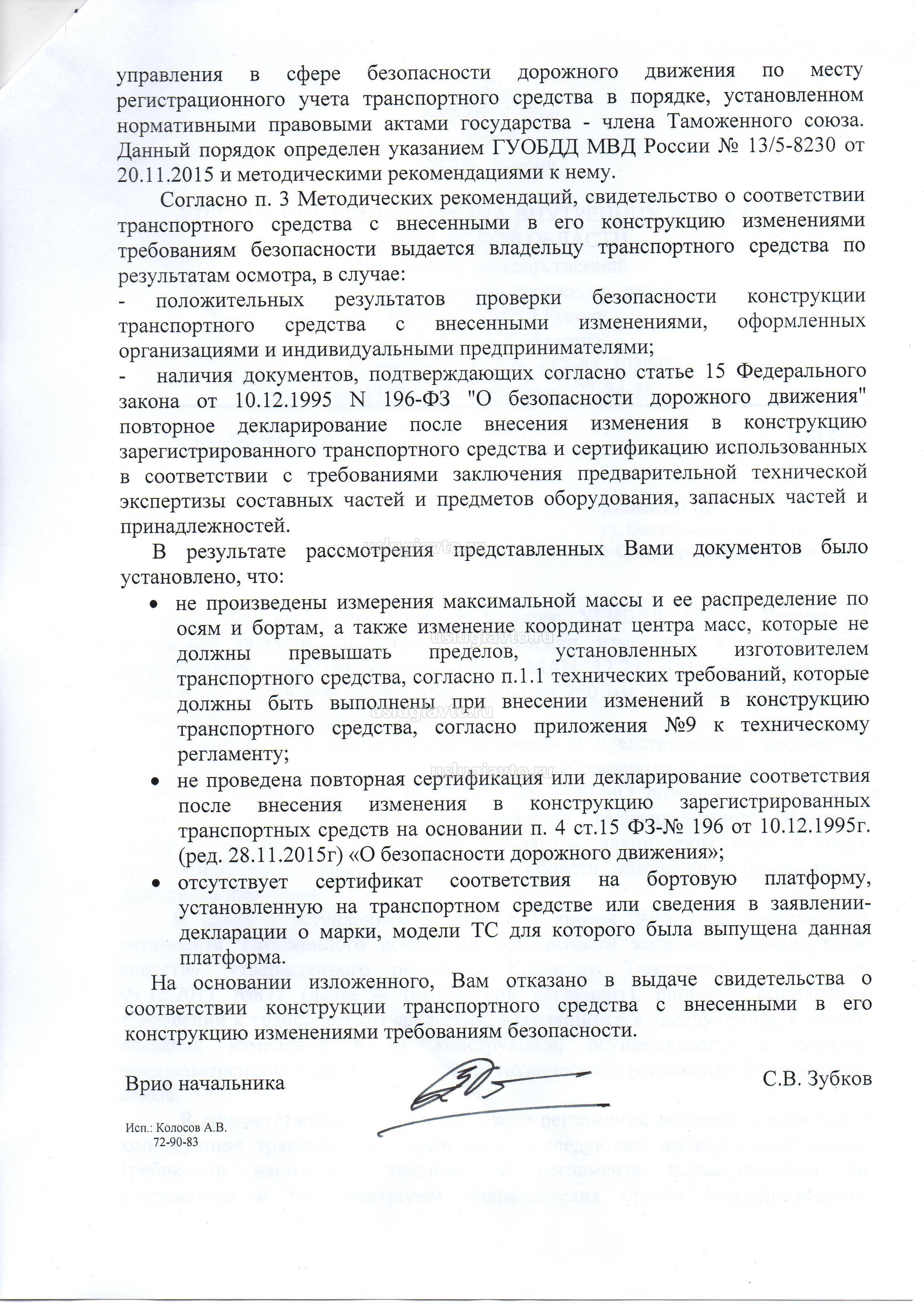 Я вас прекрасно понимаю что отказ выглядет весьма странно, но для обжалования действий ГИБДД в суде следует устранить недочеты, которые имеются, пусть даже они вымышленные. После повторного обращения, в заявлении укажите что все недочеты устранены, то есть прилагаю квитанцию с весовой, ответ федеральных органов что б/у не сертифицируется и дополнение к описанию установленных запчастей.