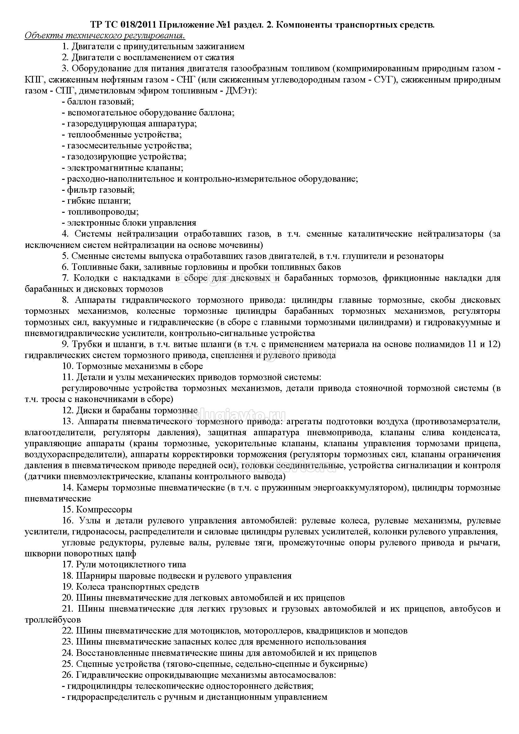 Ответ: Перечень компонентов указан в разделе 2 Приложения №1 к ТР ТС 018/2011. Перечень требований к типам компонентов ТС указан в Приложении №10 ТР ТС 018/2011.