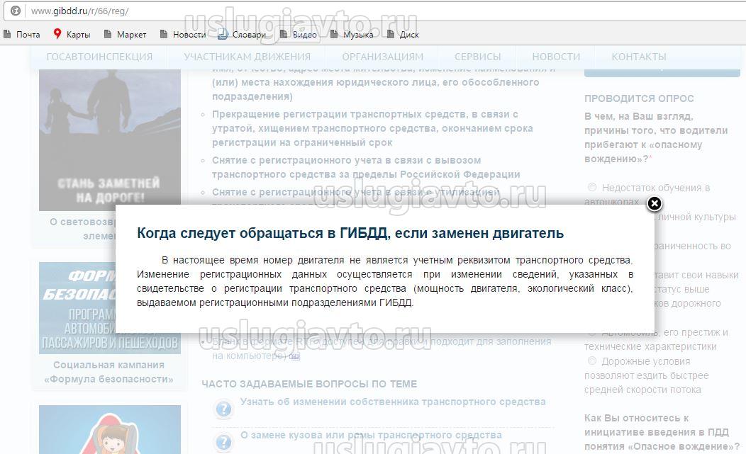 Александр_с_Урала писал(а):На официальном сайте ГИБДД по Свердловской области написано, что замена двигателя на идентичный вообще не проблема. Рег действия не требуются. На деле это не работает. Во все Свердловской области. Скан сайта прилагаю.