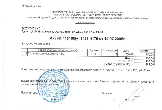 Evgen_72rus писал(а):Добрый день. Подскажите, куда обратиться за помощью в восстановлении заключения НАМИНа экспертизу в ФГУП "НАМИ" представлена документация на автомобиль AUDIALLROAD, 2004 года выпуска, (согласно ПТС 77 ТХ 611832), двигатель модели BEL029102, кузов WA1YD64B95N023674.