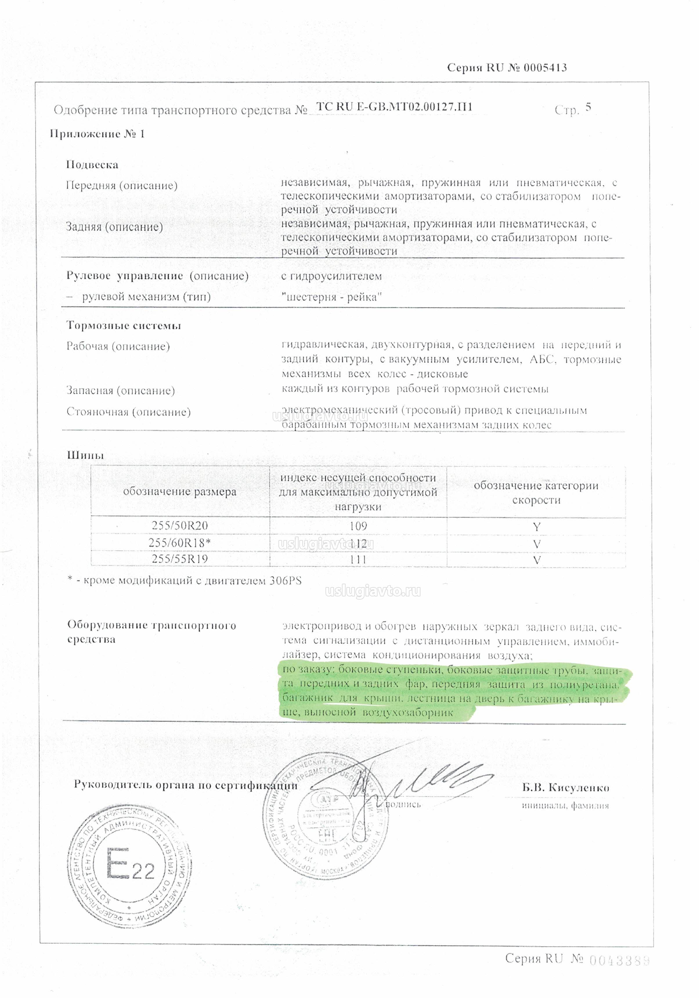 (*) означает, что сертификат соответствия выдается только на основании сообщения об официальном утверждении типа по Правилам ЕЭК ООН.