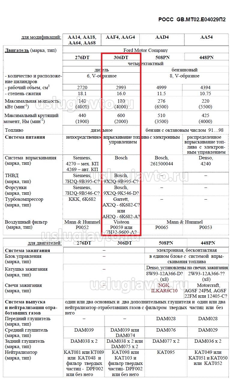 2. Модель двигателя; --- дизельный двигатель обьемом 3.0 литра (306DT)