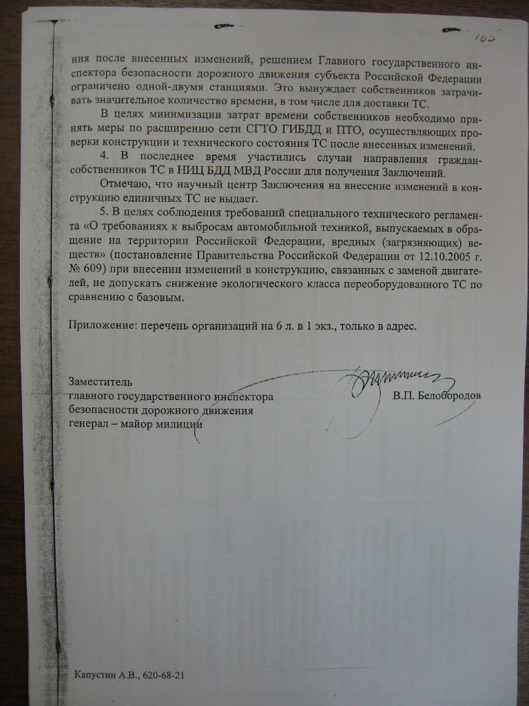 Произвел переоборудование, согласно выданного Вами заключения 77-7244 от 11.09.12.
